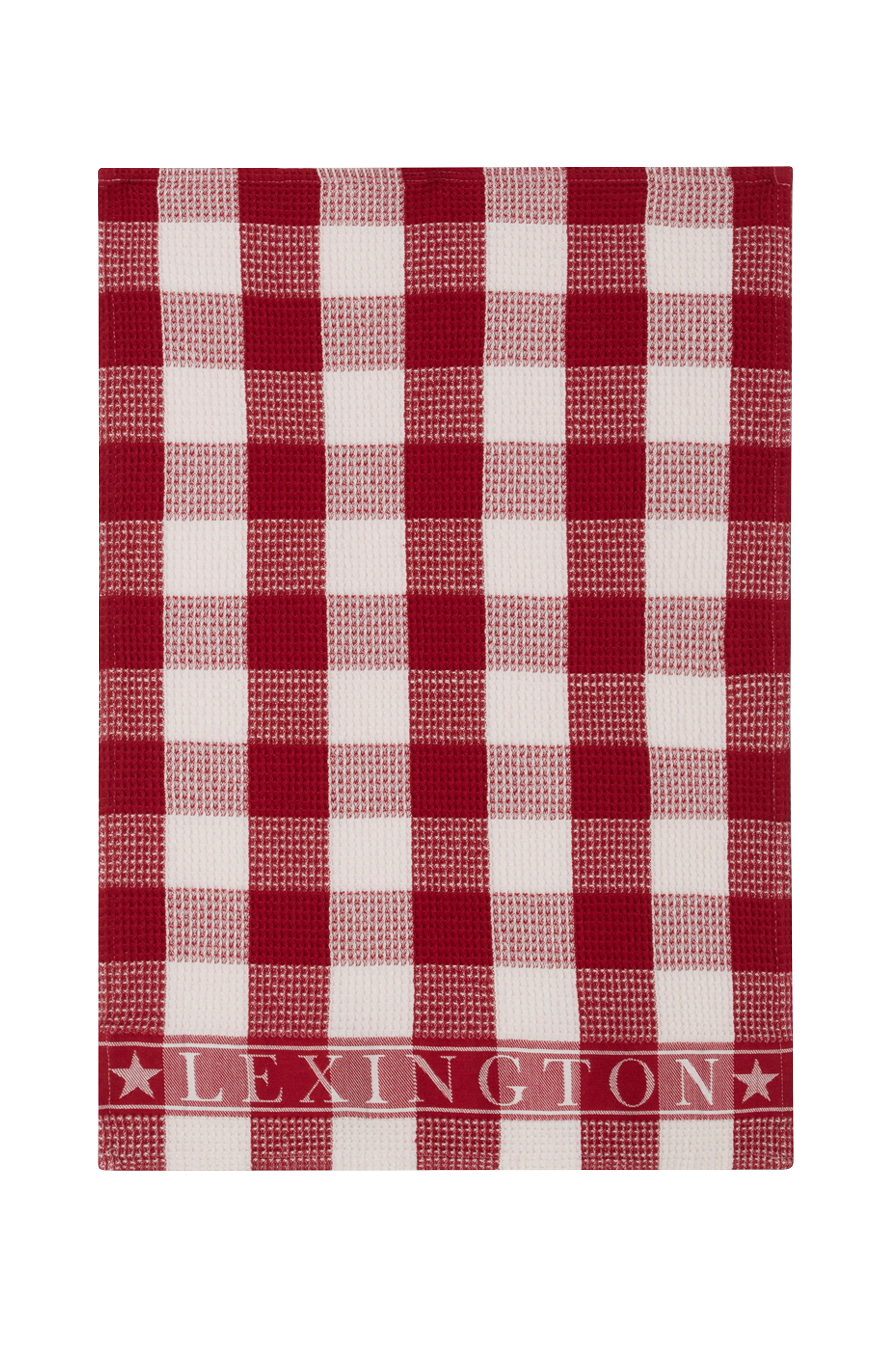 Herlige Holiday Kollektion kjøkkenhåndkle kombinerer fantastisk funksjonalitet med fantastisk design, produsert i en klassisk vaffelvev med ruter og Lexington-logo i jacquard på. Vaffelteksturen gjør kjøkkenhåndkleet av bomull superabsorberende. Det setter en festlig tone på en juledag eller nyårsfest for familie og venner. Det har en enkel brettet fald og opphengsløkke med logo som gjør det enkelt å tørke.