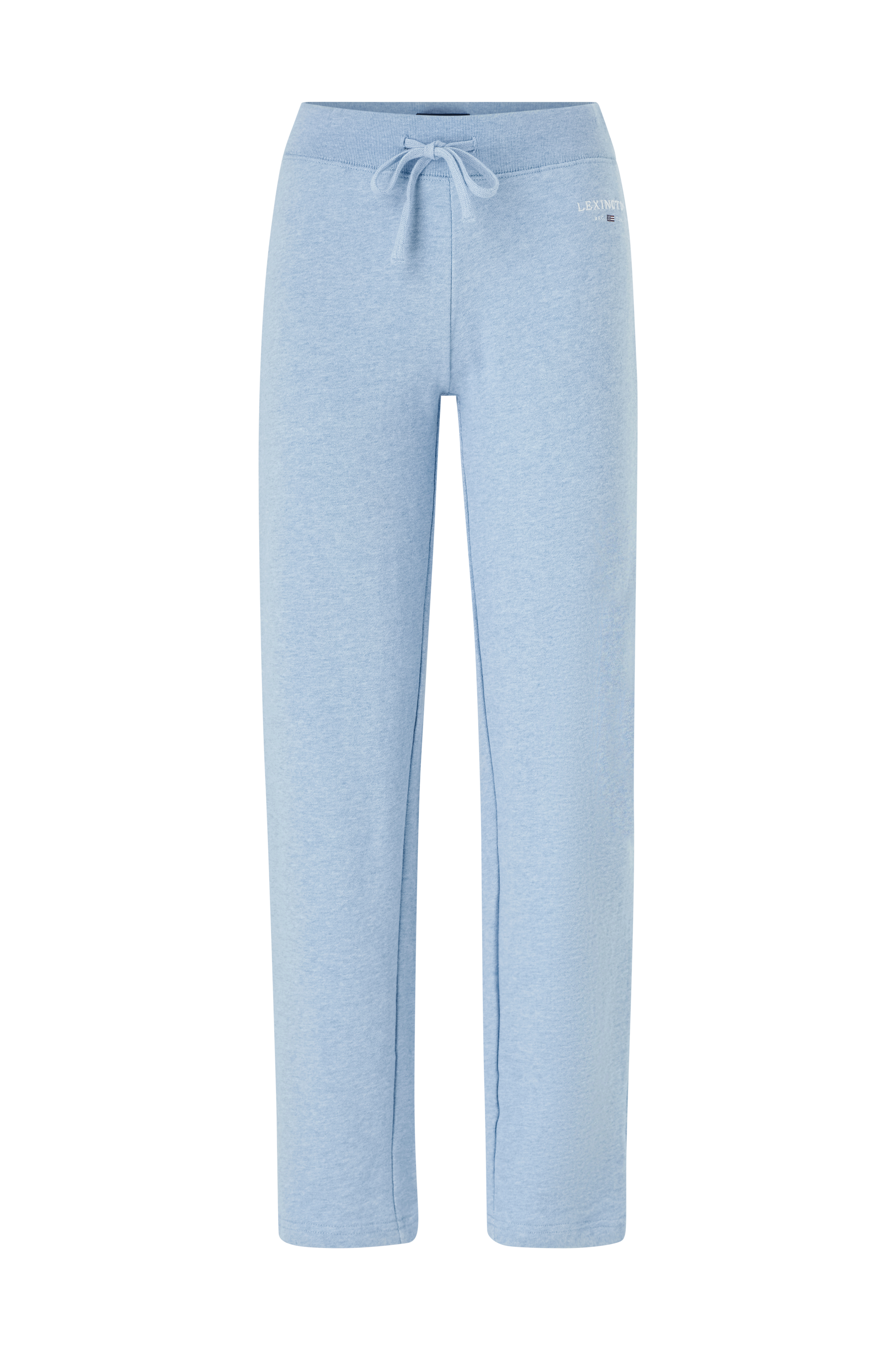 Disse klassiske jerseybuksene med logo i lyseblå melange gir uanstrengt stil og komfort. De har en brodert Lexington-logo på benet, noe som gir dem en distinkt merkevarebygging. Den elastiske linningen med snøring sørger for en sikker, tilpassbar passform, mens pull-on-designet gjør dem enkle å bruke. Buksene har et snitt med rette ben og gir et elegant, avslappet utseende som passer perfekt til både avslapping og uformelle utflukter.