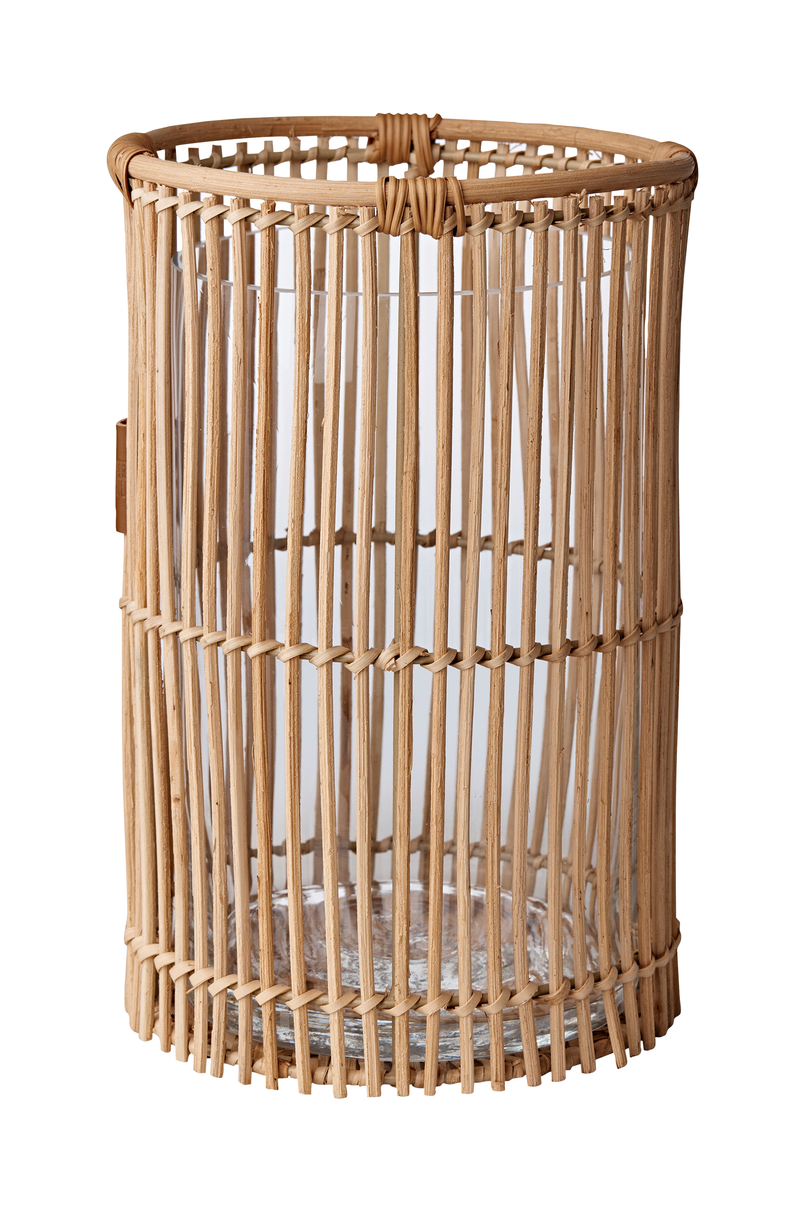 Pynt opp hjemmet ditt med vår runde lysestake i rotting, som er laget av tropisk rotting og har en slitesterk metallramme for ekstra stabilitet. Denne allsidige lysestaken er designet for å matche vårt runde rottingbrett, og den kan også brukes som en sjarmerende vase som tilfører varme og eleganse til ethvert miljø. Den er egnet for både innendørs og utendørs bruk, og for enkelhets skyld følger det med en glassvase. Hver holder er håndlaget i et naturlig materiale og har unike variasjoner i farge og størrelse, noe som gjør den til en unik aksent i hjemmet ditt.
