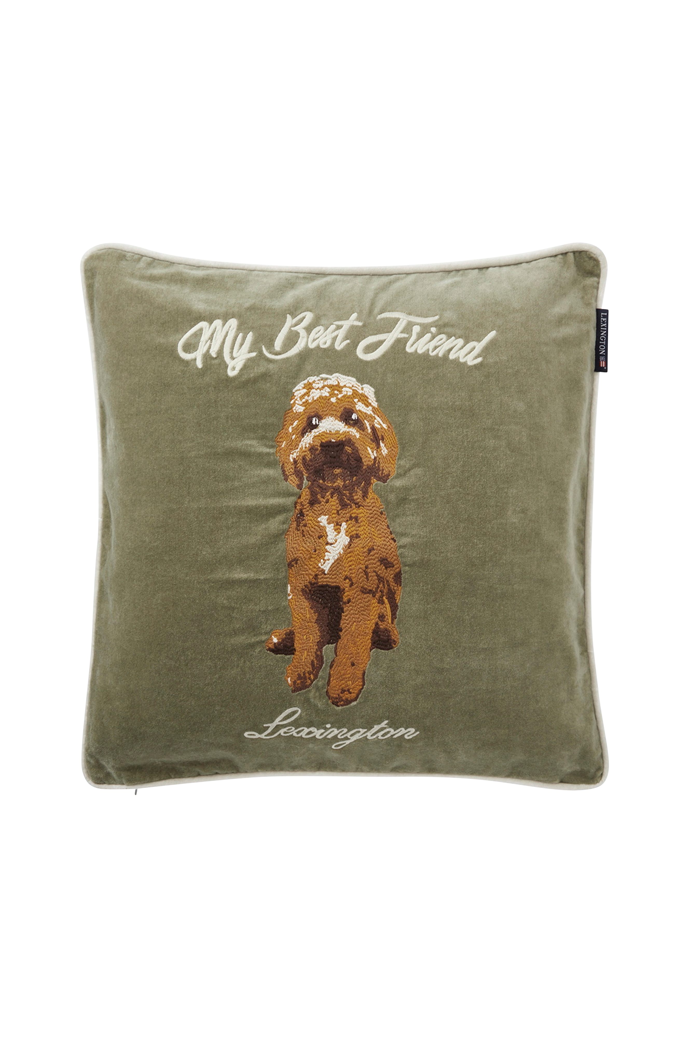 Putevaretrekket "My Best Friend" i fløyel er det perfekte valget for dyreelskere. En søt, pelskledd venn og et eksklusivt Lexington-kunstverk pryder en overdådig bakgrunn i bomullsfløyel og gir hjemmet ditt en leken stemning.