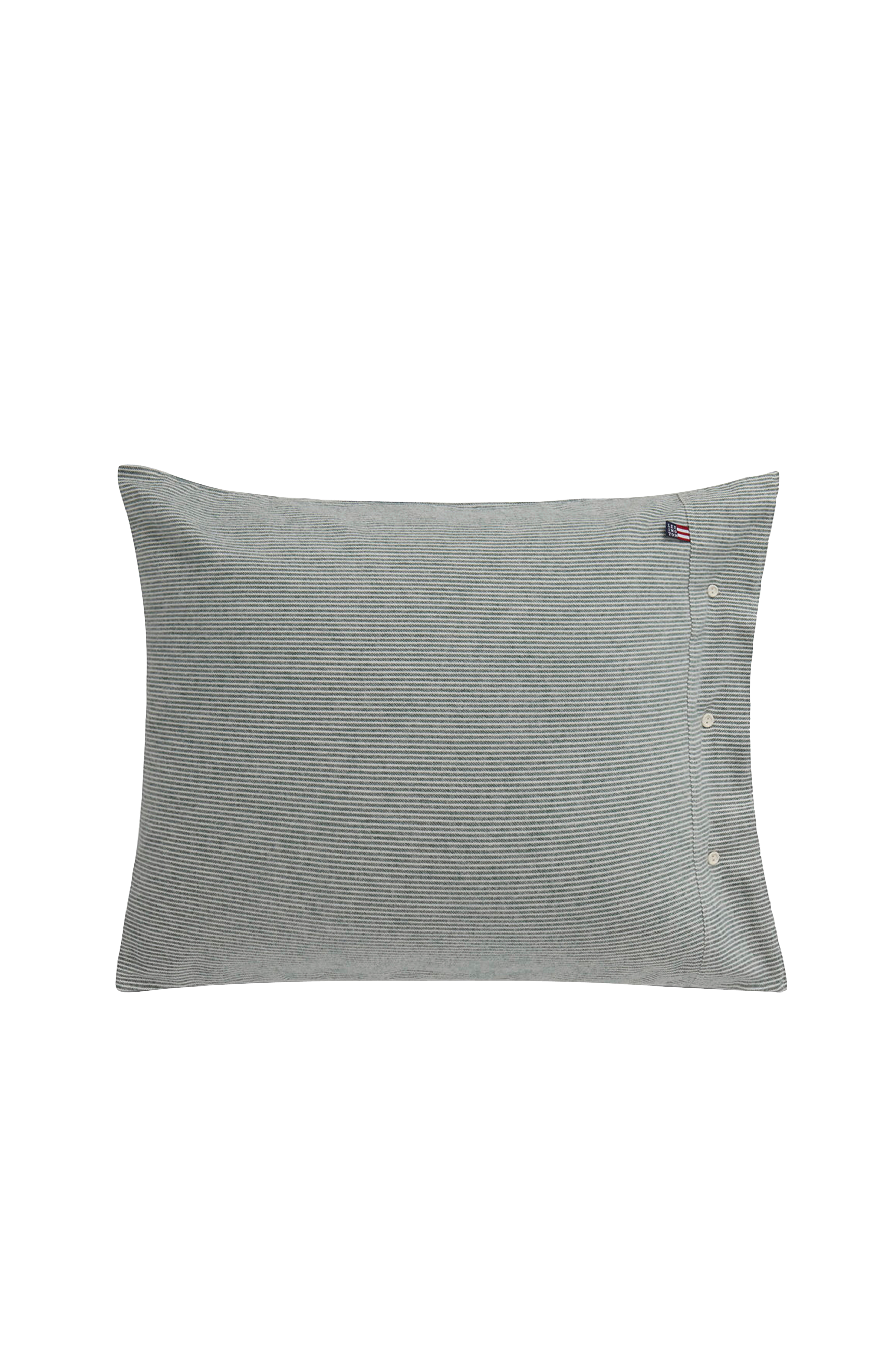 På kalde netter finnes det ikke noe bedre enn dette stripete putevaret i 100% bomull. Flanellen får sin mykhet av børstingen på begge sider. Overflaten er skåret til en uniform lengde, noe som gjør at flanellen ikke nupper seg og dessuten er utrolig holdbar. Striper i subtilt grønt og hvitt avrunder den nedtonede, koselige looken. Sidelukkingen har dekorative doble sømmer, og avsluttes med benhvite, logopregede gummiknapper for en klassisk look. Putevaret er fritt for helseskadelige stoffer. Vaskeråd: Varm vask (60°), ikke bruk blekemiddel, tørketromles på lav temperatur, strykes på høy temperatur, ikke rens, vaskes på vrangen.