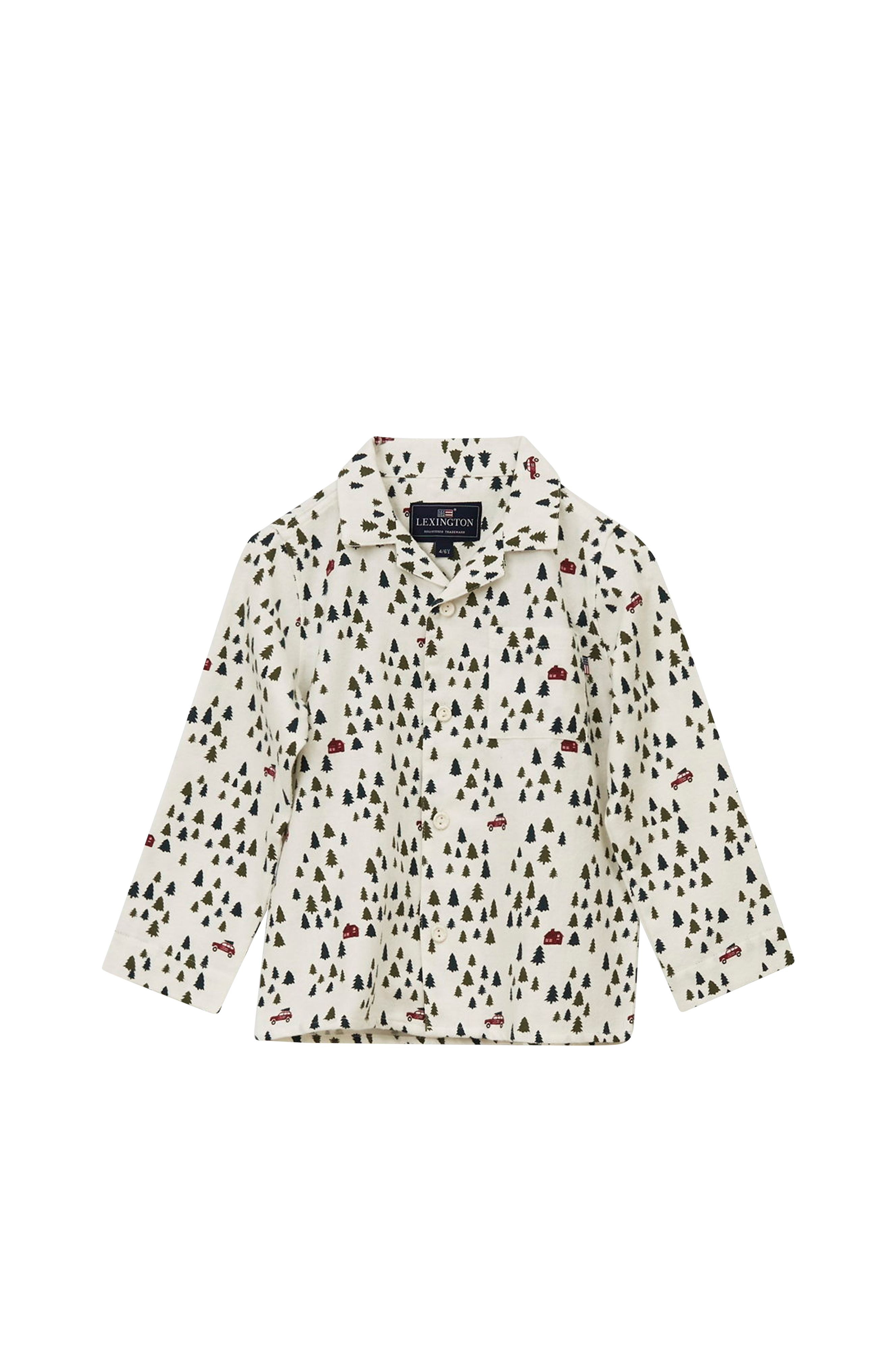 Natta, unger, i denne helmønstrede pyjamasen med et herlig julelandskap som raskt er på vei til å bli en stor favoritt blant alle som elsker jul. Pyjamasen er sydd i bomullsstoff som er flosset og børstet, og dermed føles utrolig mykt mot huden. Midjestrikk, baklomme og snøring i samme stoff på buksen. Overdelen har lomme foran og gummiknapper med preget logo.