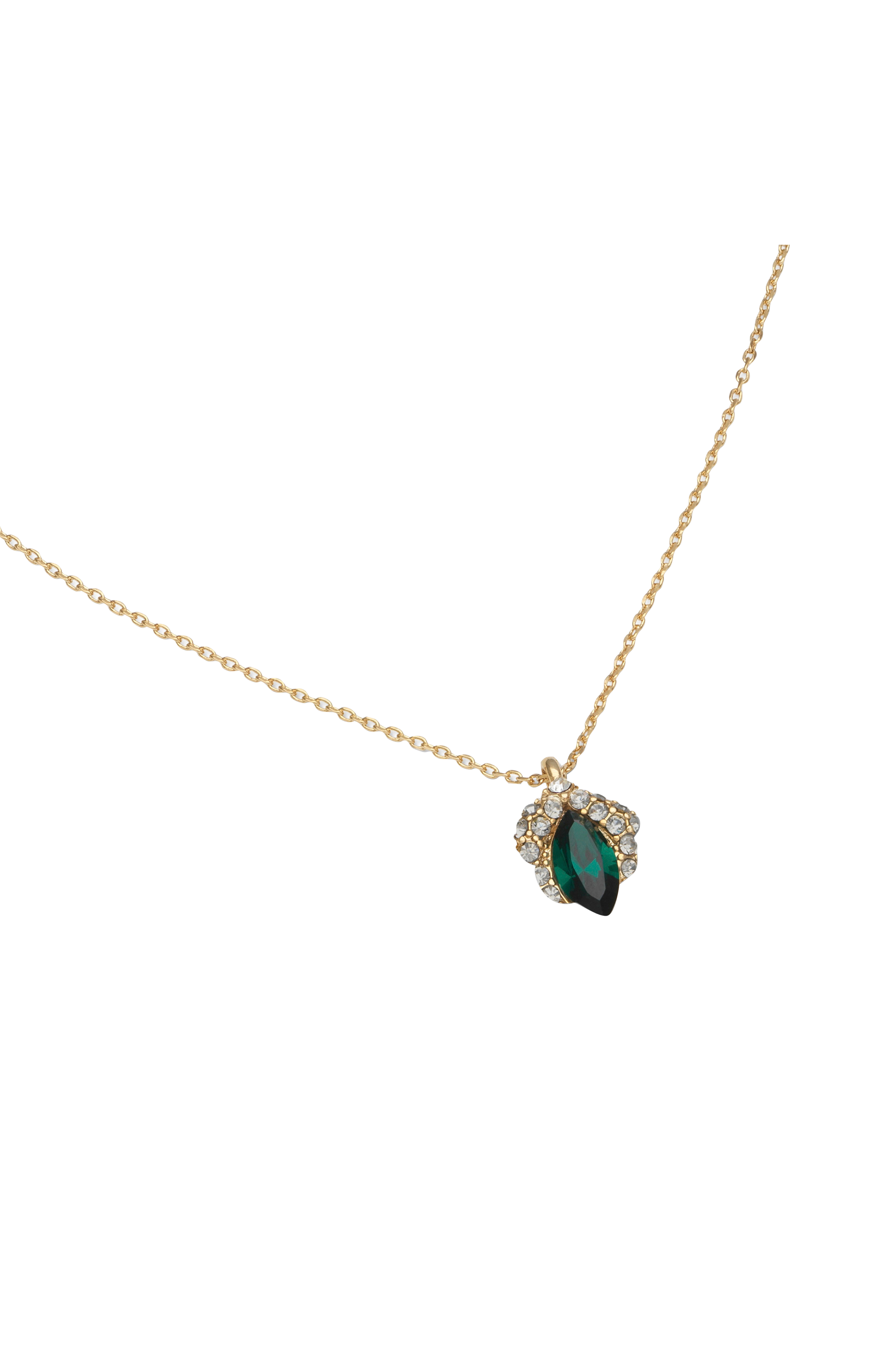 • Tynn kjede i gullbelagt messing• Anheng med grønn krystall og glitrende swarovski-krystaller• Mål: 39–45 cm