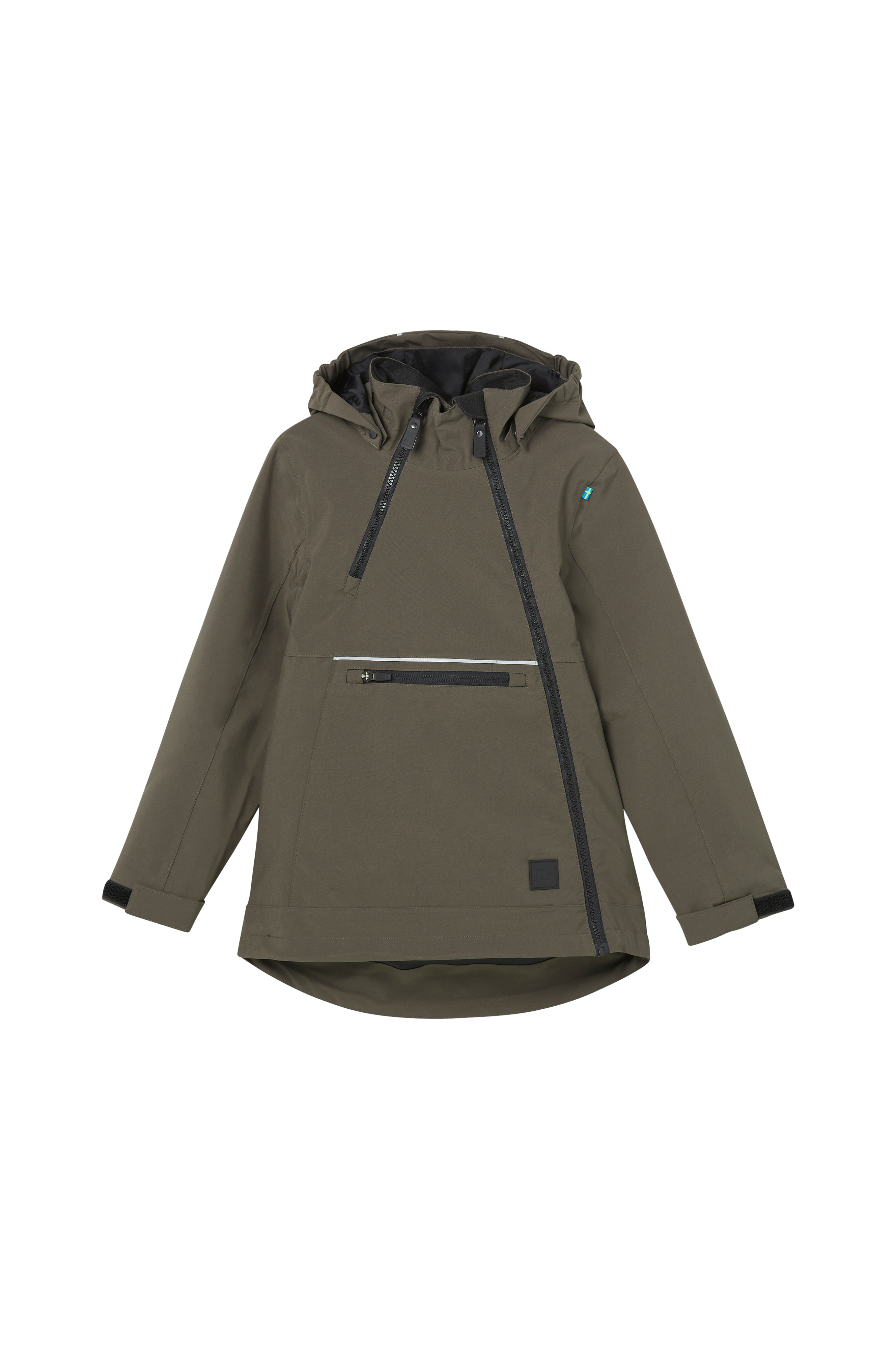 Lag 3-plagg som beskytter mot både vind og vann. Den har et ekstra mykt og elastisk materiale, og kan kompletteres med for eksempel fleece under på kalde dager. Jakken har vanntetthet på 10 000 mm, pusteevne 5000 g/m2/24t og teipede sømmer. Den har en lang og en kort frontglidelås, lomme med glidelås på magen, refleksdetaljer, avtagbar hette og smidig nylonfôr. Overflatebehandlingen er fluorkarbonfri.