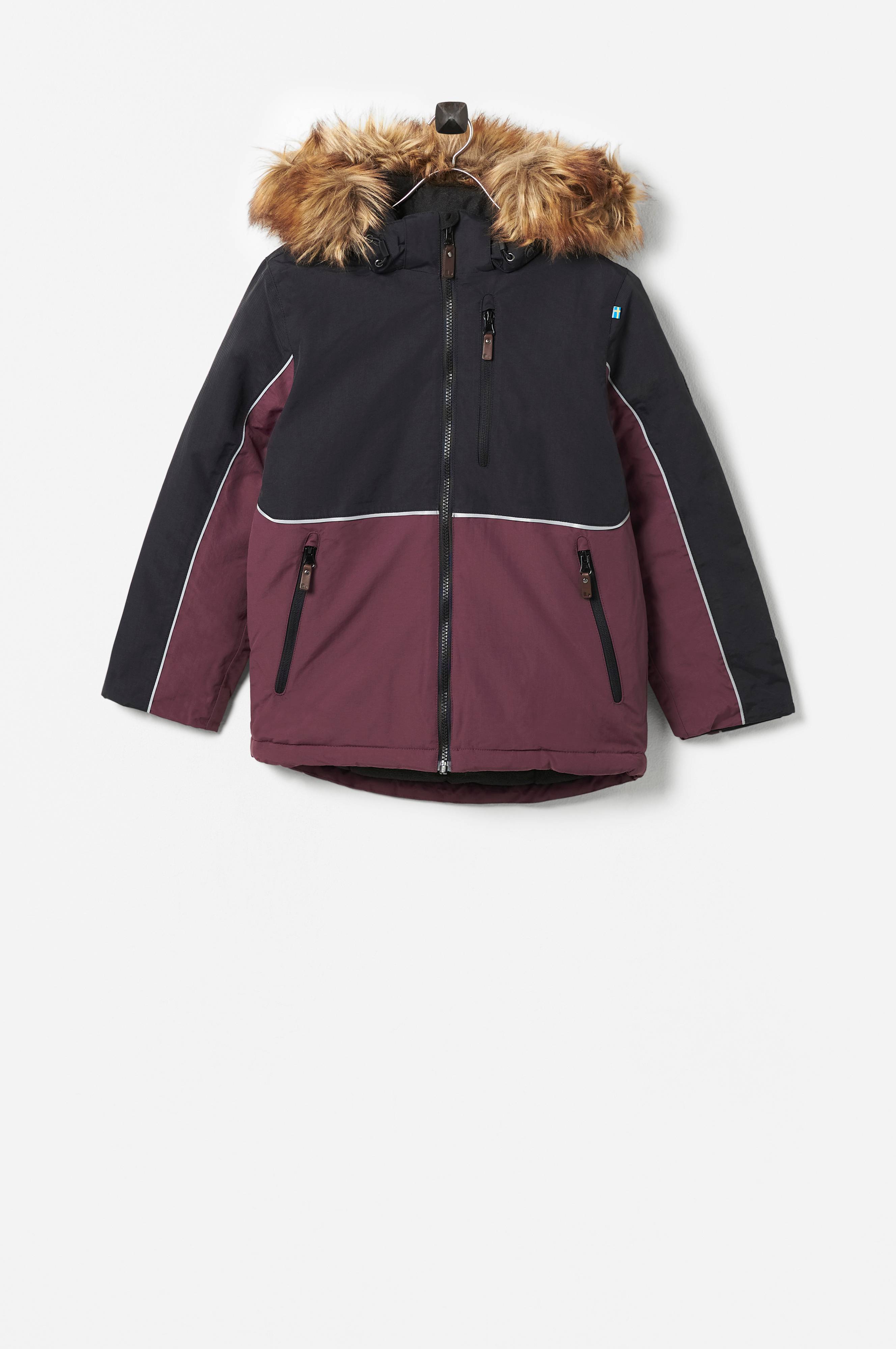 • Varmt vattert og vanntett vinterjakke • Vanntetthet: 15 000 mm • Pusteevne: 6000 g/m2/24 t • Teipede sømmer • Fleecefôr i ryggen • Justerbar og avtagbar hette med avtagbar fuskepelskant • Tre lommer med glidelås • Justerbare ermekanter med elastisk trikotkant • Snøring med stoppere i nederkanten • Refleksdetaljer rundt • Utstyrt med "grow cuff" som gjør at du kan forlenge ermene ved å sprette opp en søm • Produktet er impregnert med Rudolf Bionic Finish Eco, en vannavvisende behandling som er uten tilsatte perfluorerte stoffer (PFC). Du kan måtte aktivere impregneringen på nytt hvis vannet på overflaten slutter å perle seg. Dette gjør du ved å tilsette varme på lav temperatur, f.eks. ved å stryke eller tørketromle. Det kan også være nødvendig med impregneringsmiddel ved behov.