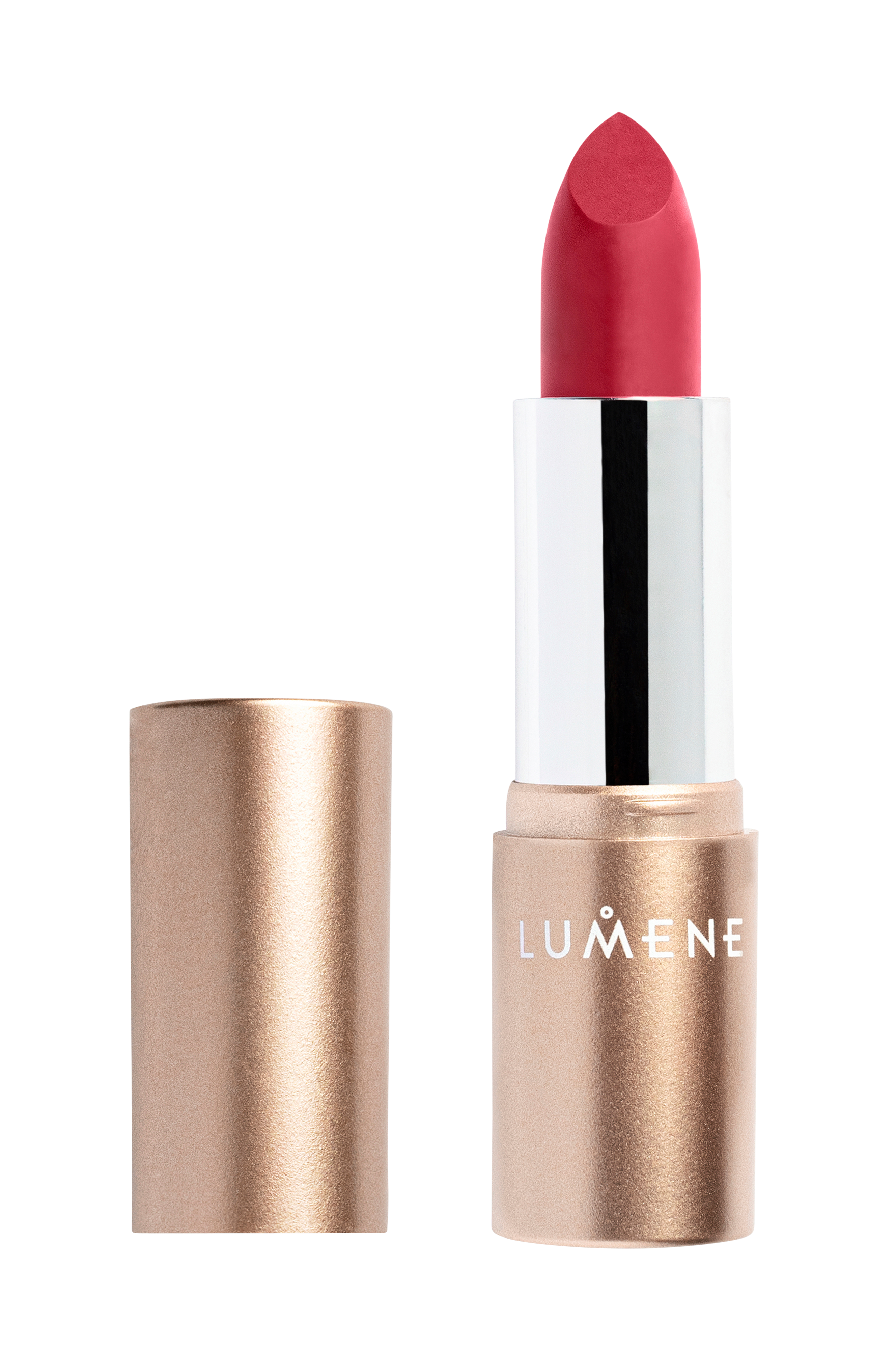 Vegansk leppestift med myk og matt finish som føles behagelig på leppene. Inneholder pleiende nordisk havresmør, bærfrøoljer og en blanding av naturlig voks og betain som gir leppene fuktighet, pleie og beskyttelse.
