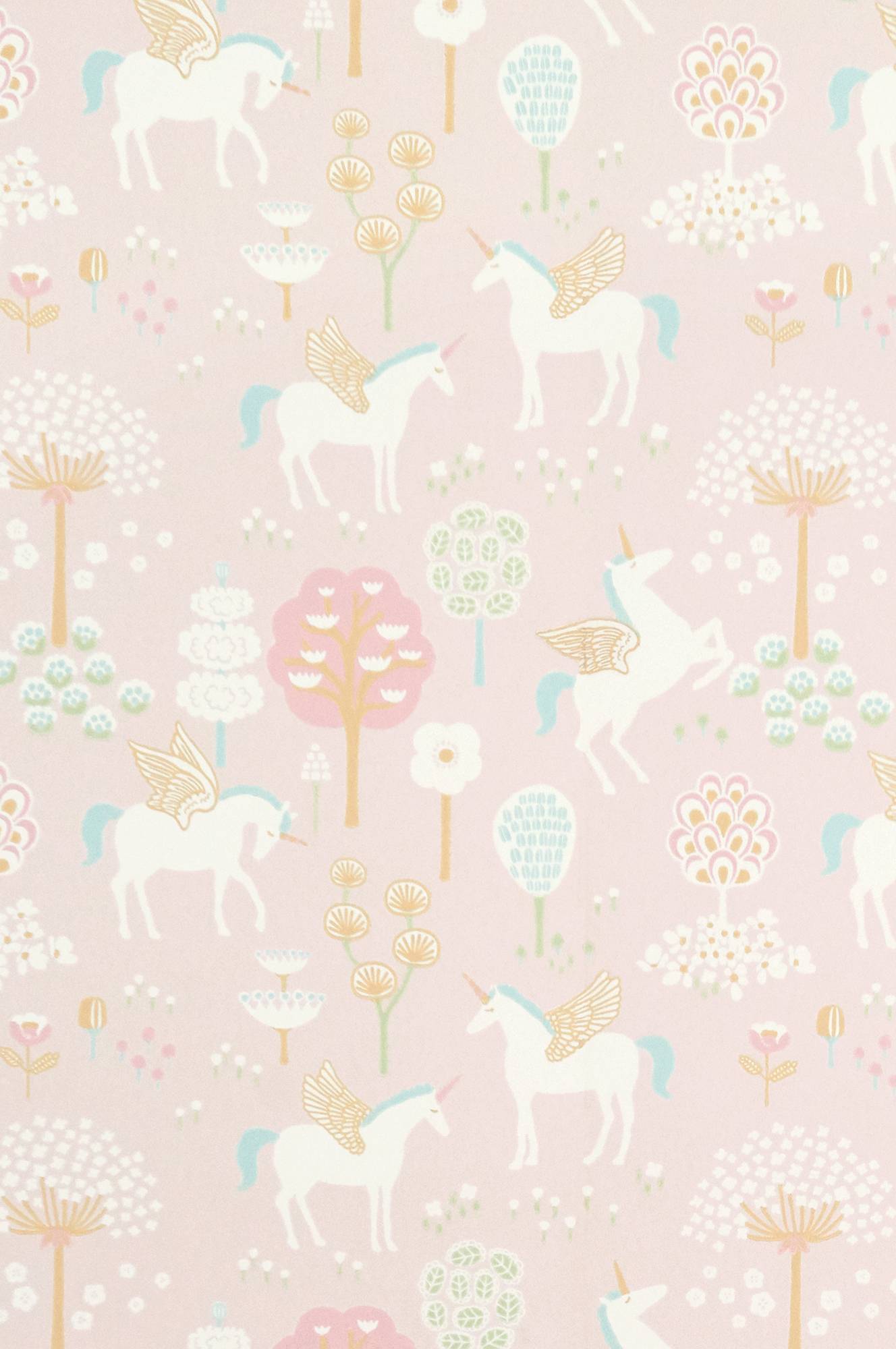 Tapetprøve til tapet True Unicorns, farge Rosa.Målet på denne prøven er ca. 210 x 297 mm (tilsvarer et A4-ark).