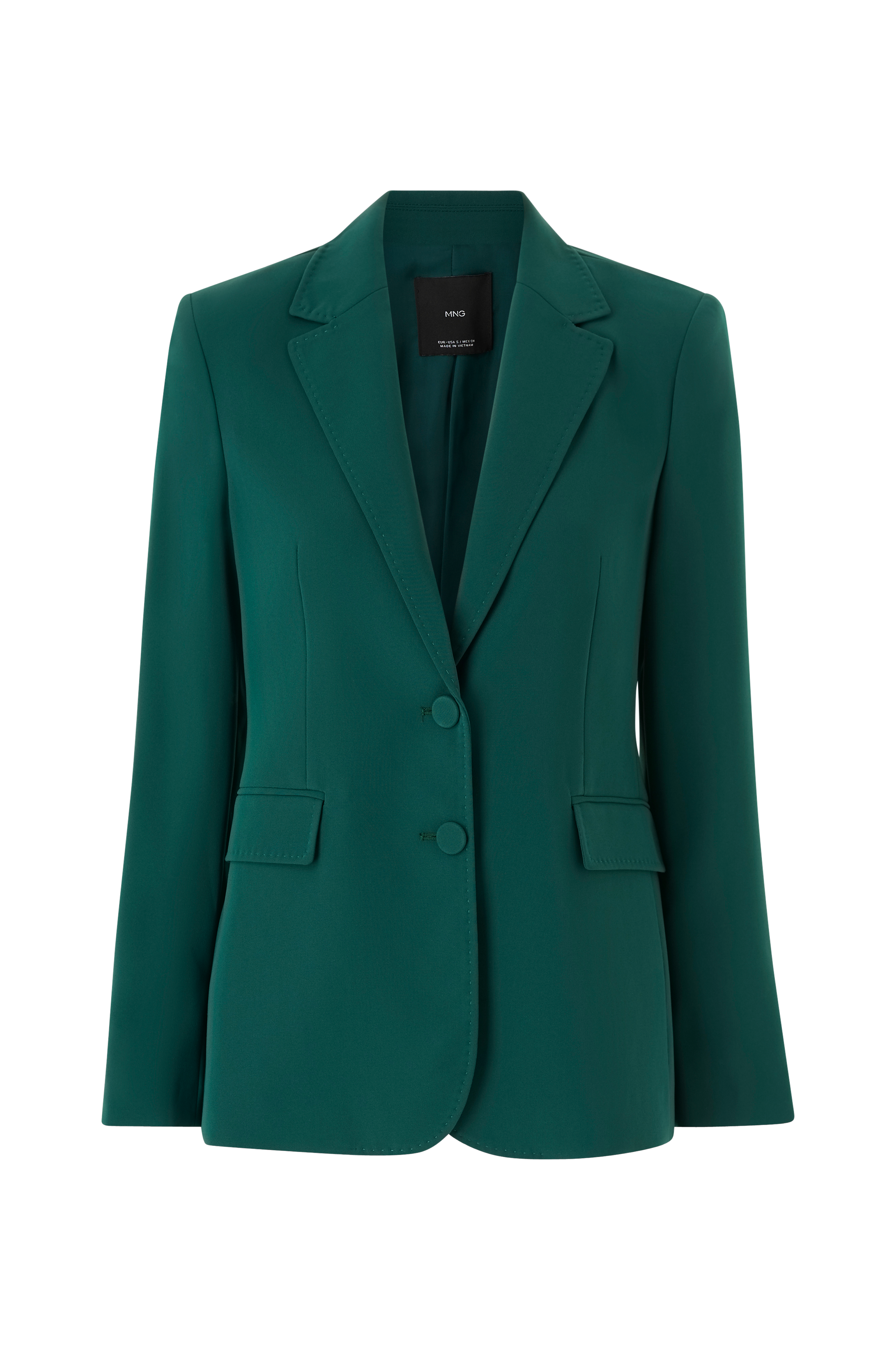 • Polstrede skuldre• Lukning med to kledde knapper• Tre kledde knapper i ermeslutten• Ventilasjon nedover ryggen• Vevd, glatt foring• Lengde: 69 cm i størrelse 20