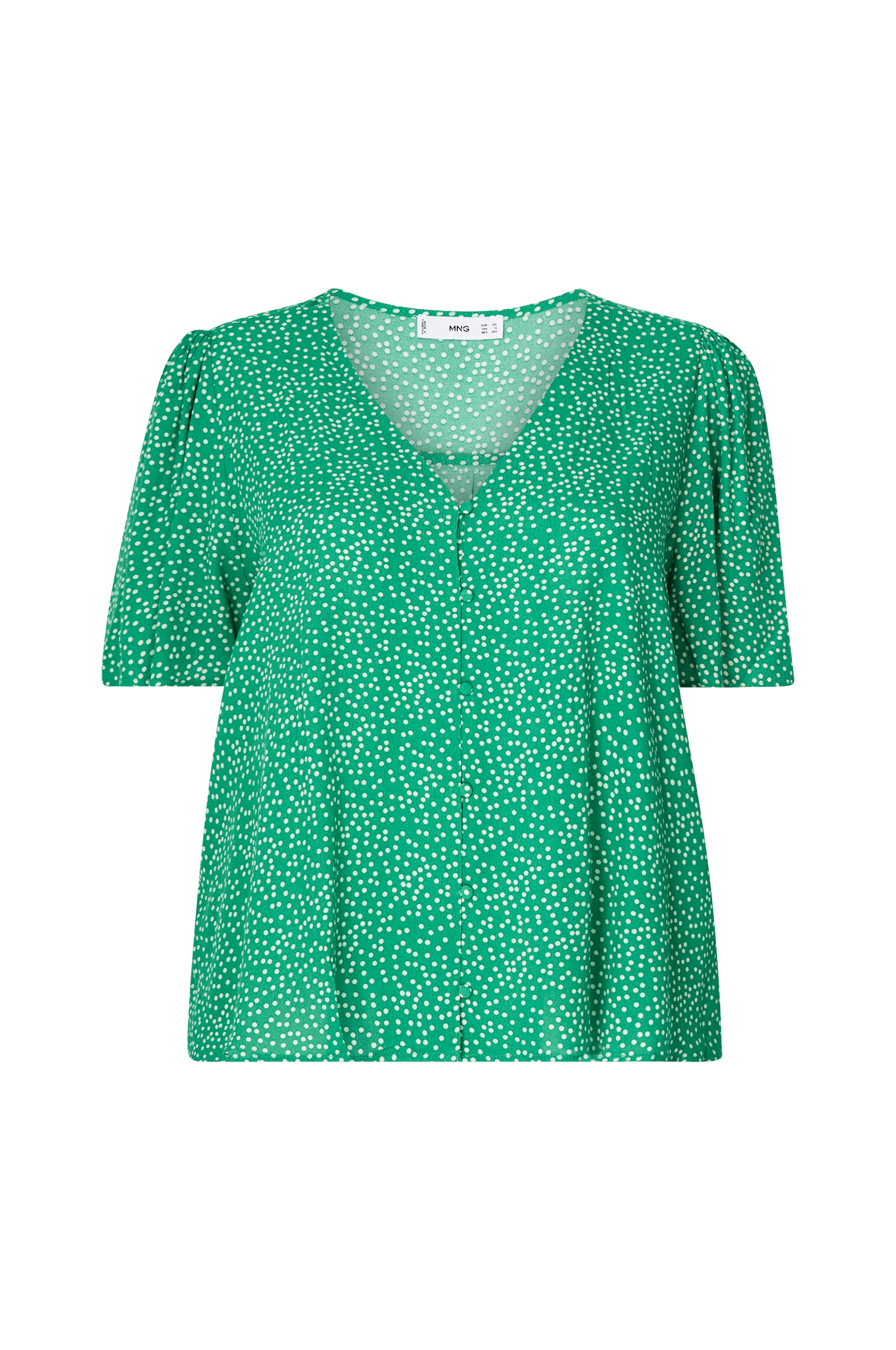 • Plusstørrelser• Vevd viskose• V-formet hals• Knapper• Kort erme