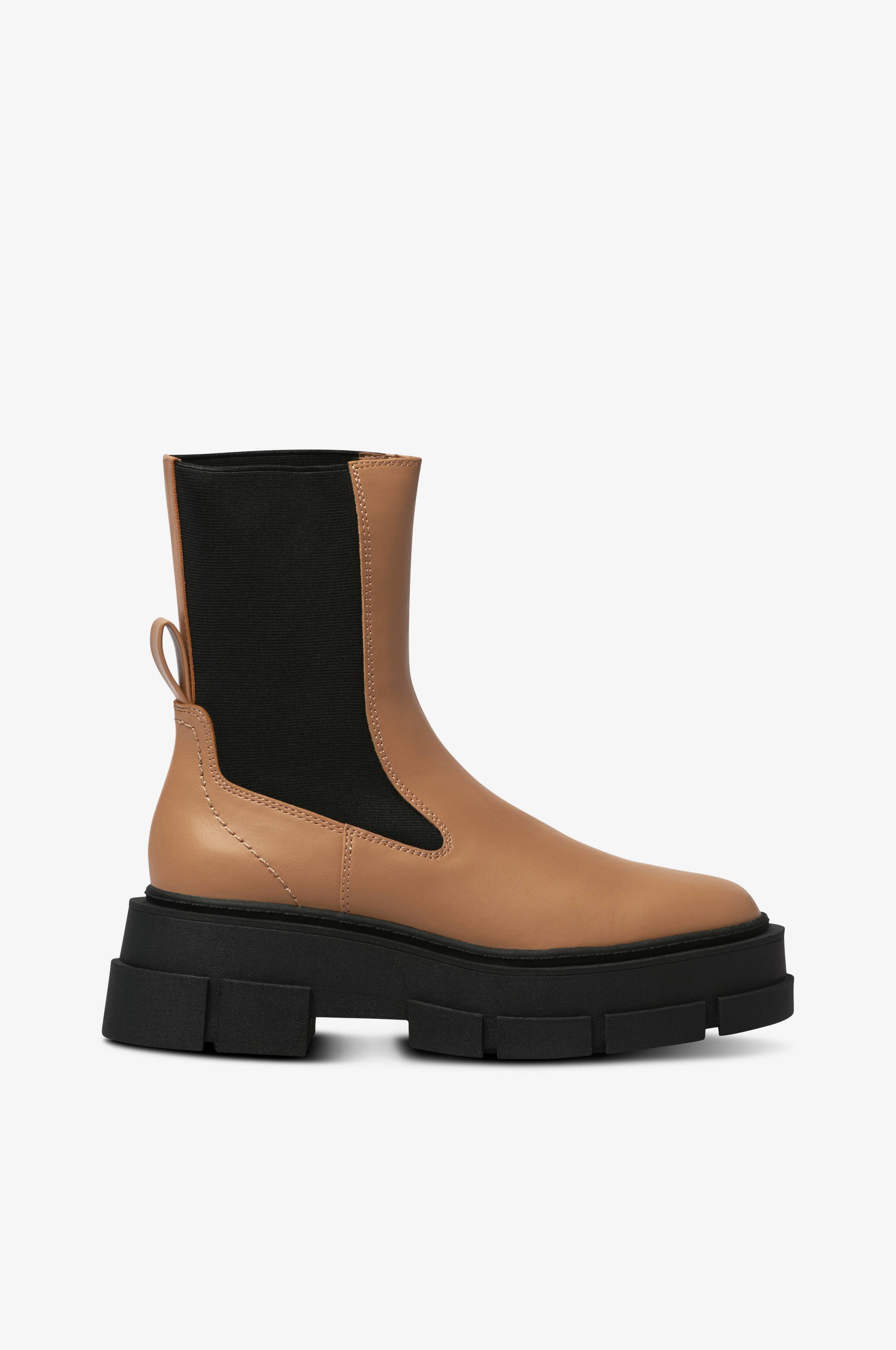 • Modell i skinnimitasjon• Brede elastiske paneler på skaftet• Draflik bakpå• Høy, grovmønstret såle• Skafthøyde: 18 cm i størrelse 37• Sålehøyde: 3,5 cm• Hælhøyde: 5,5 cm