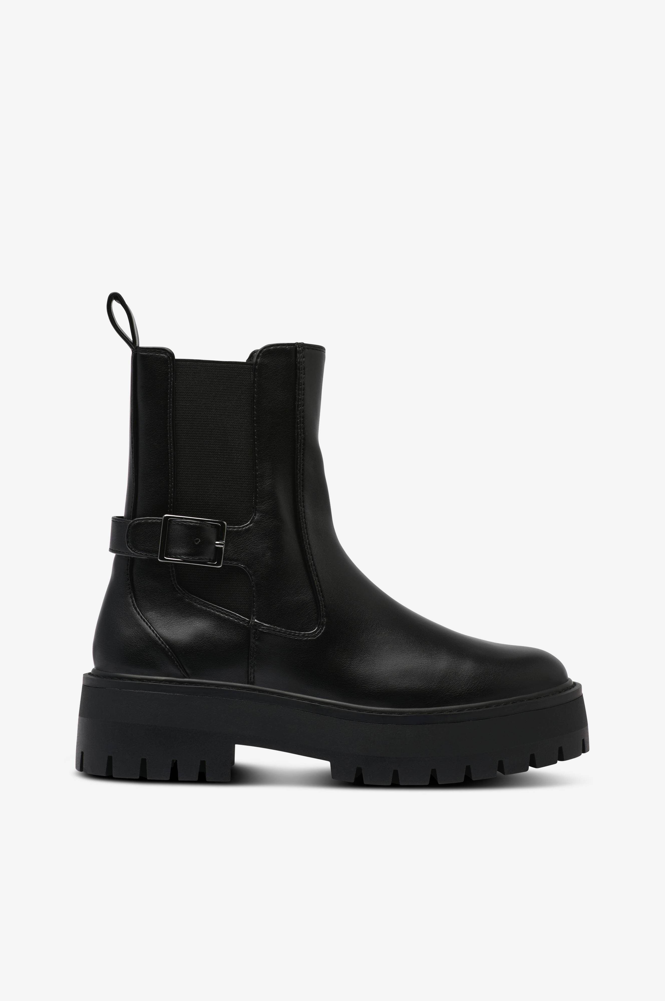 • Boots i skinnimitasjon• Elastiske paneler på skaftet• Klumpete, litt høyere såle• Stropp med spenne ved ankelen• Tekstilfôr• Skafthøyde: 17 cm i størrelse 37• Hælhøyde: 5 cm