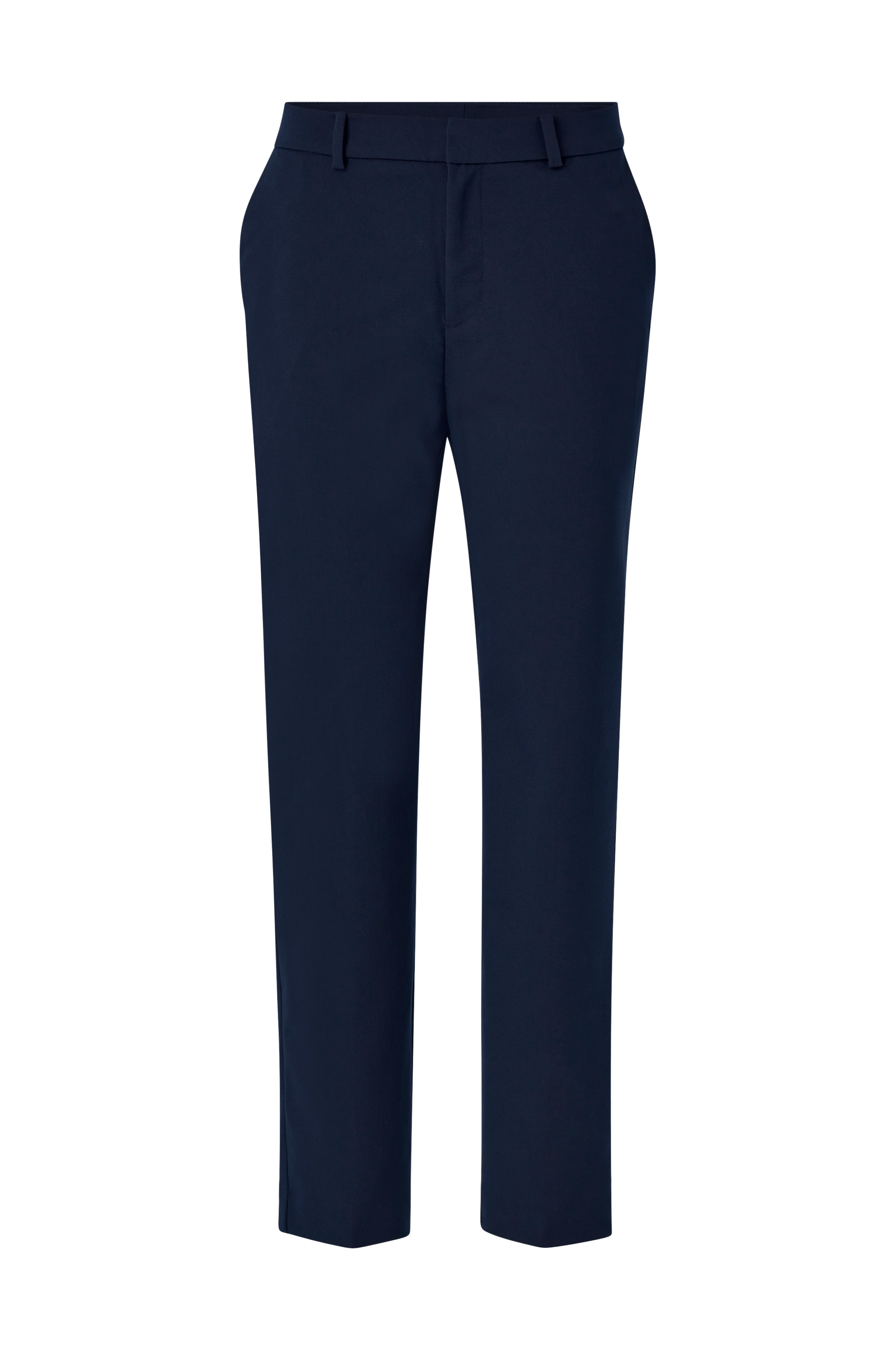 Pen bukse med rette ben. Lomme i sidene og en fuskelomme bak. Hekte i midjen.