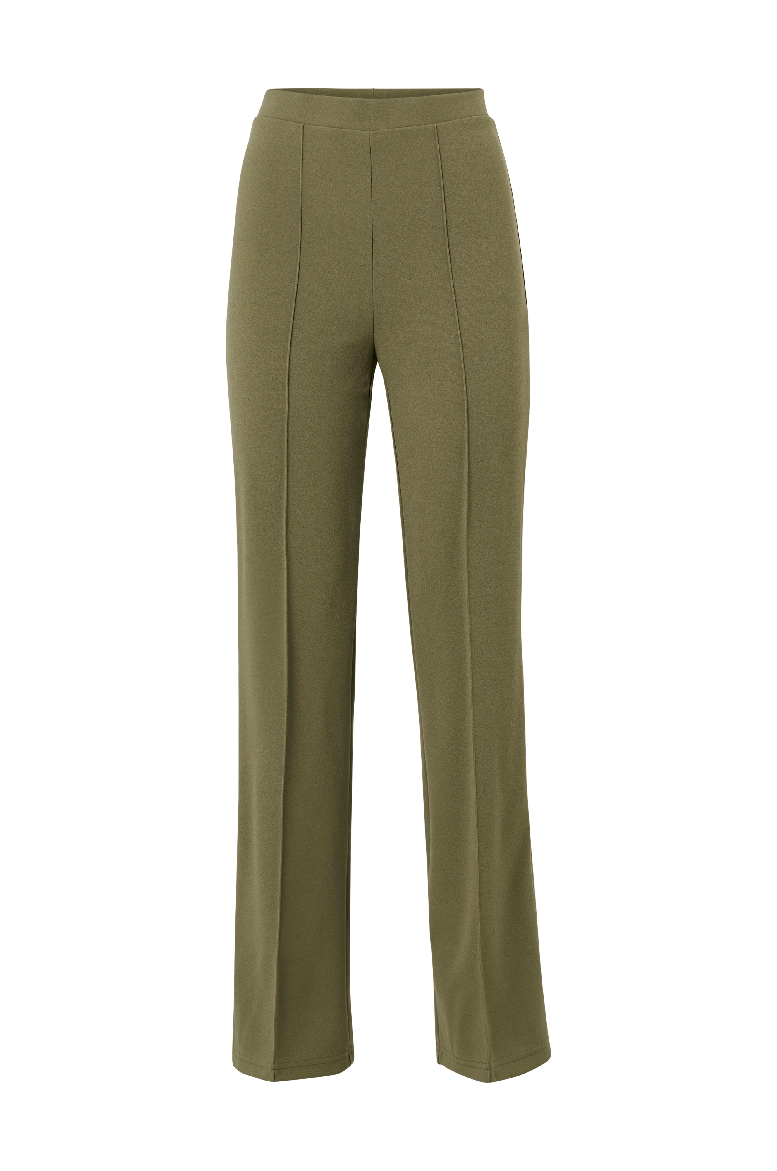 • Elastisk midje• Litt utsvingede bein• Sydd folder foran