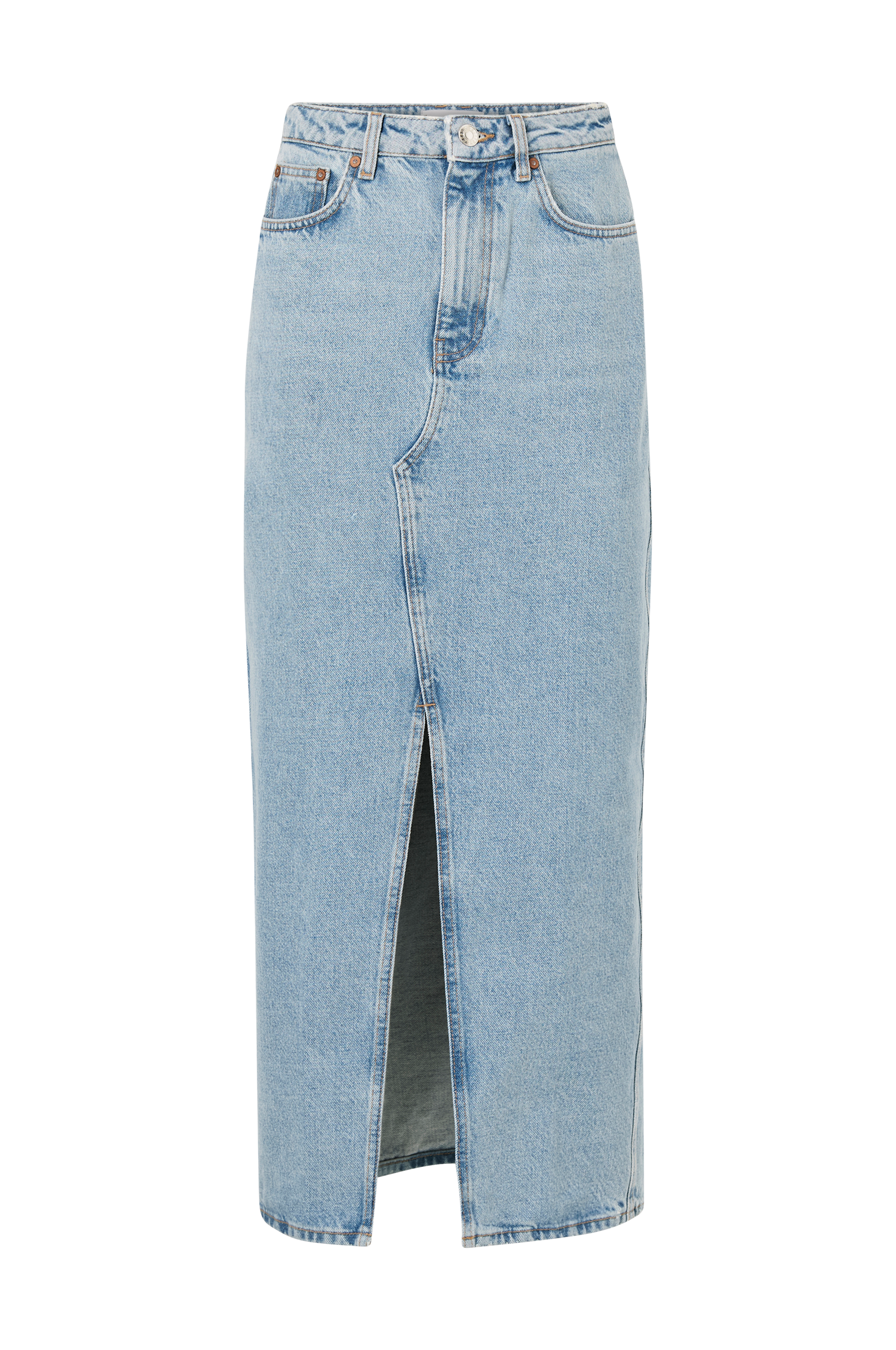 • Laget av bomullsdenim• Femlommemodell• Lynlås• Splitt foran• Lengde: 94 cm i størrelse S