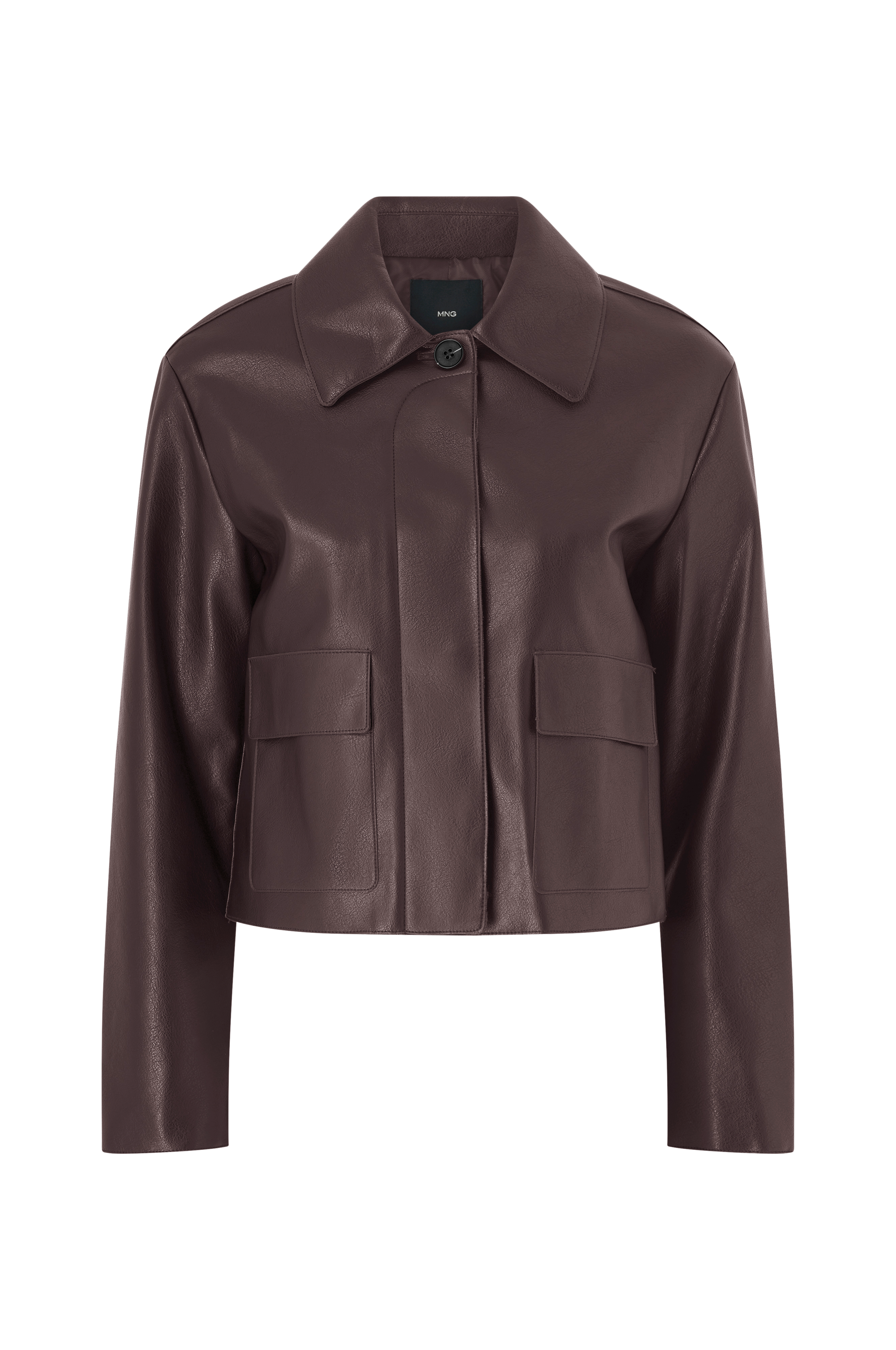 • Jakke i skinnimitasjon med krage