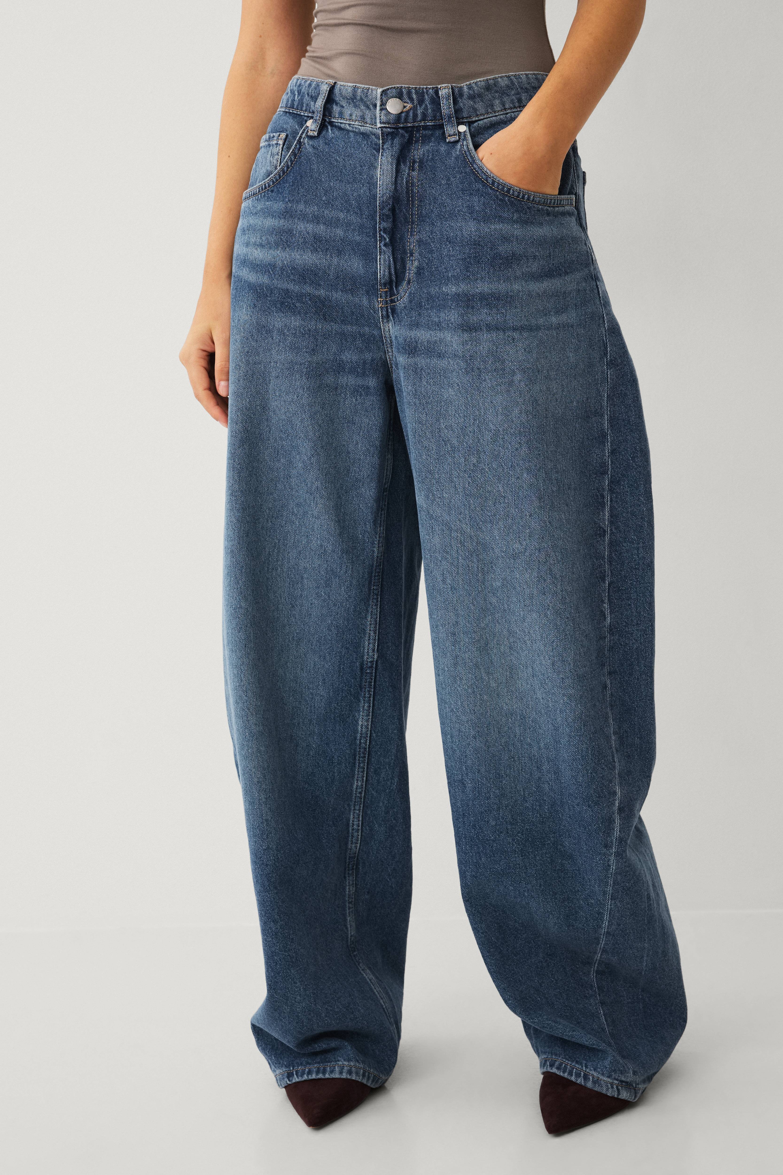• Jeans med høy midje med brede bein• Femlommemodell• Lynlås• Indre benlengde: 80 cm i størrelse 36
