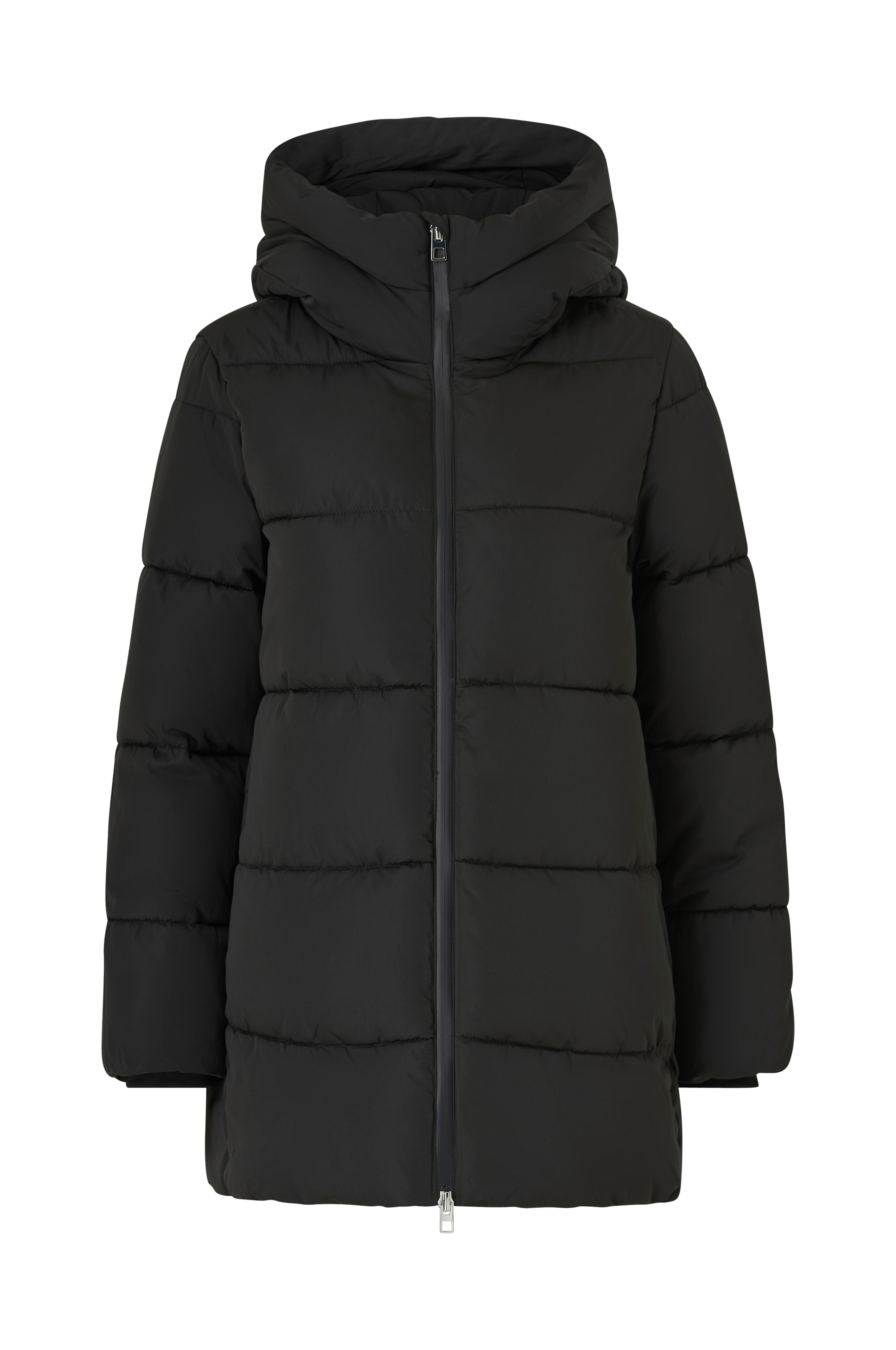 • Vattert, polstre kåpe med vannavstøtende ytterstoff • Fast hette • To-veis glidelås • Sidelommer med skjult glidelås • Ribbet mansjetter i ermeslutten • Lengde: 81 cm i størrelse 36
