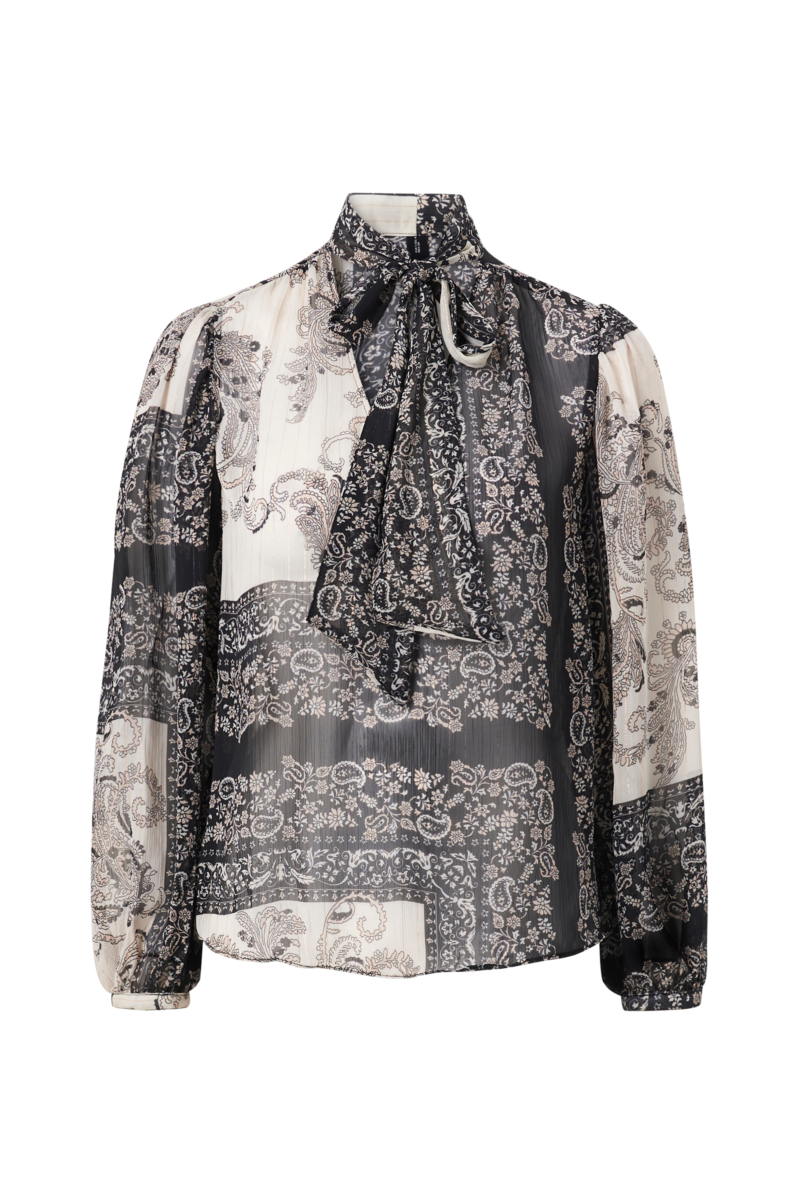 • Gjennomsiktig bluse i chiffon• V-hals snitt med knytbar stropp• Ballongermer med tynn mansjett
