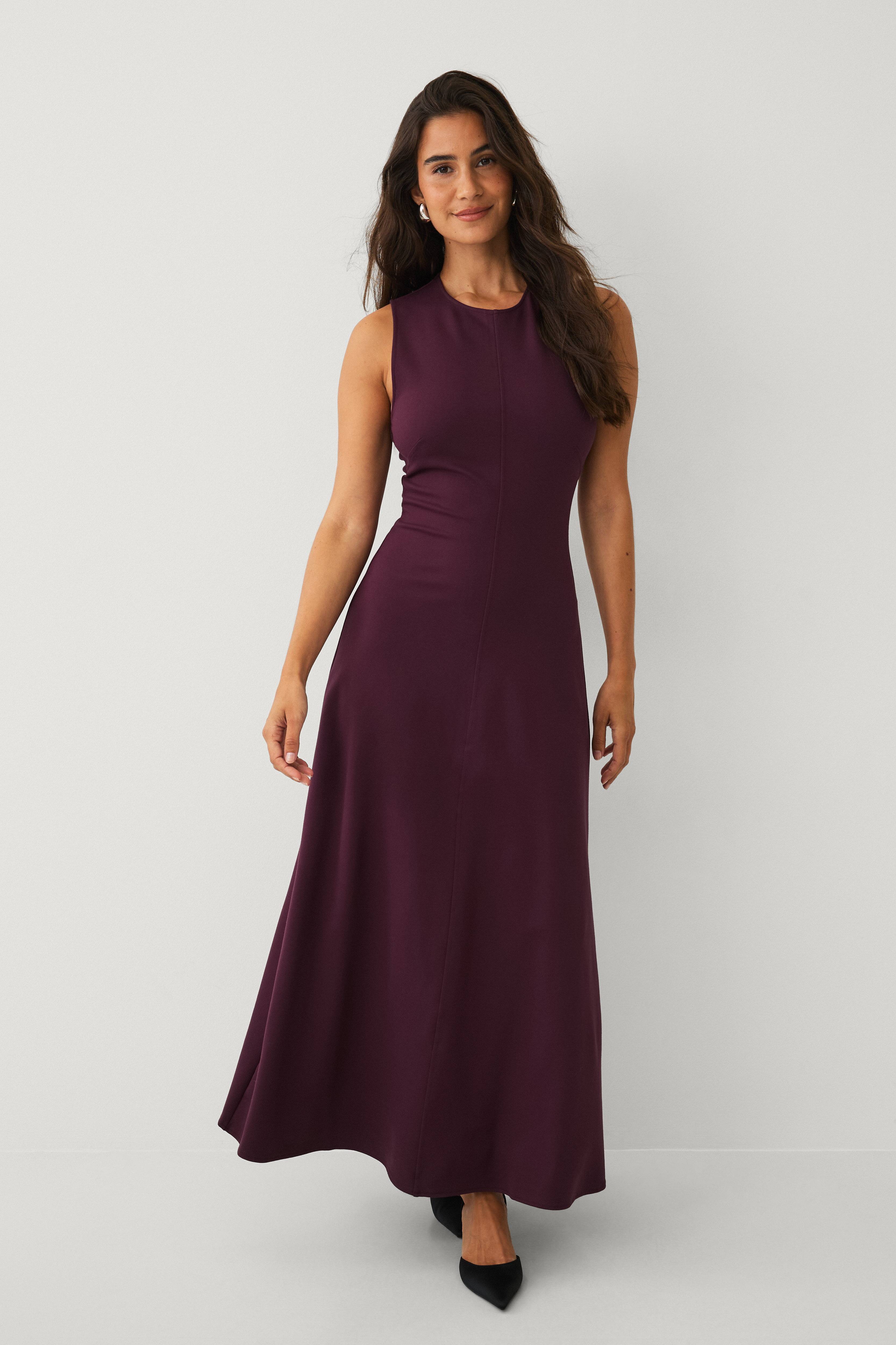 • Figurnær passform, ermløs kjole i viskosemiks