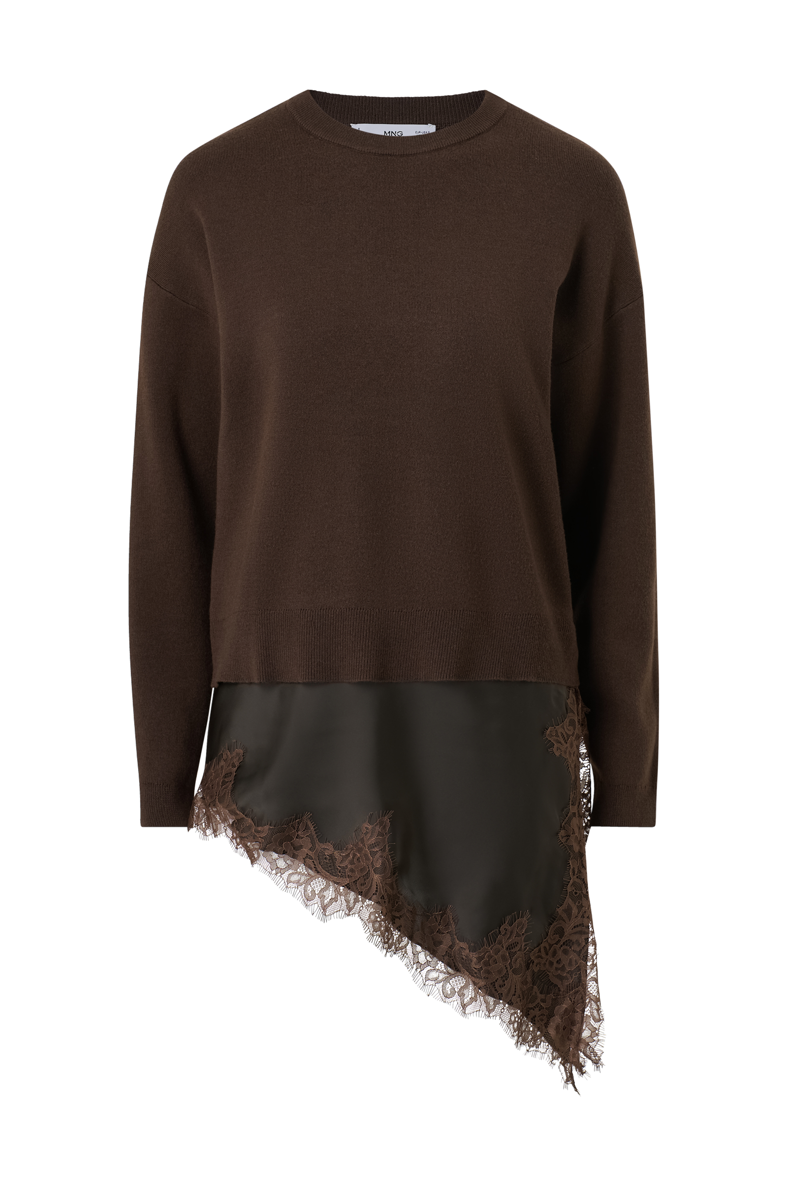 • Vevd stoff i sateng med dekorativ blondekant og splitt på bunnen