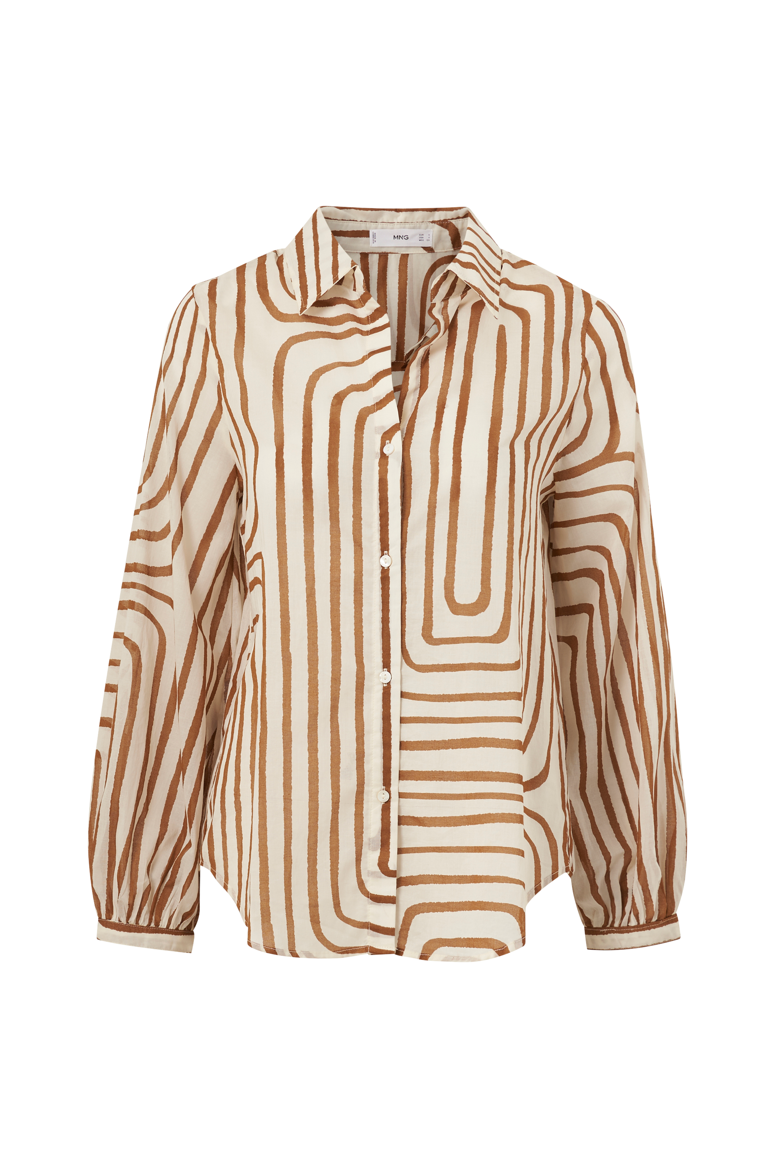 - Skjorte i bomull- Halvtransparent materiale- V-utringning- Lange ermer- Smale mansjetter med en knapp