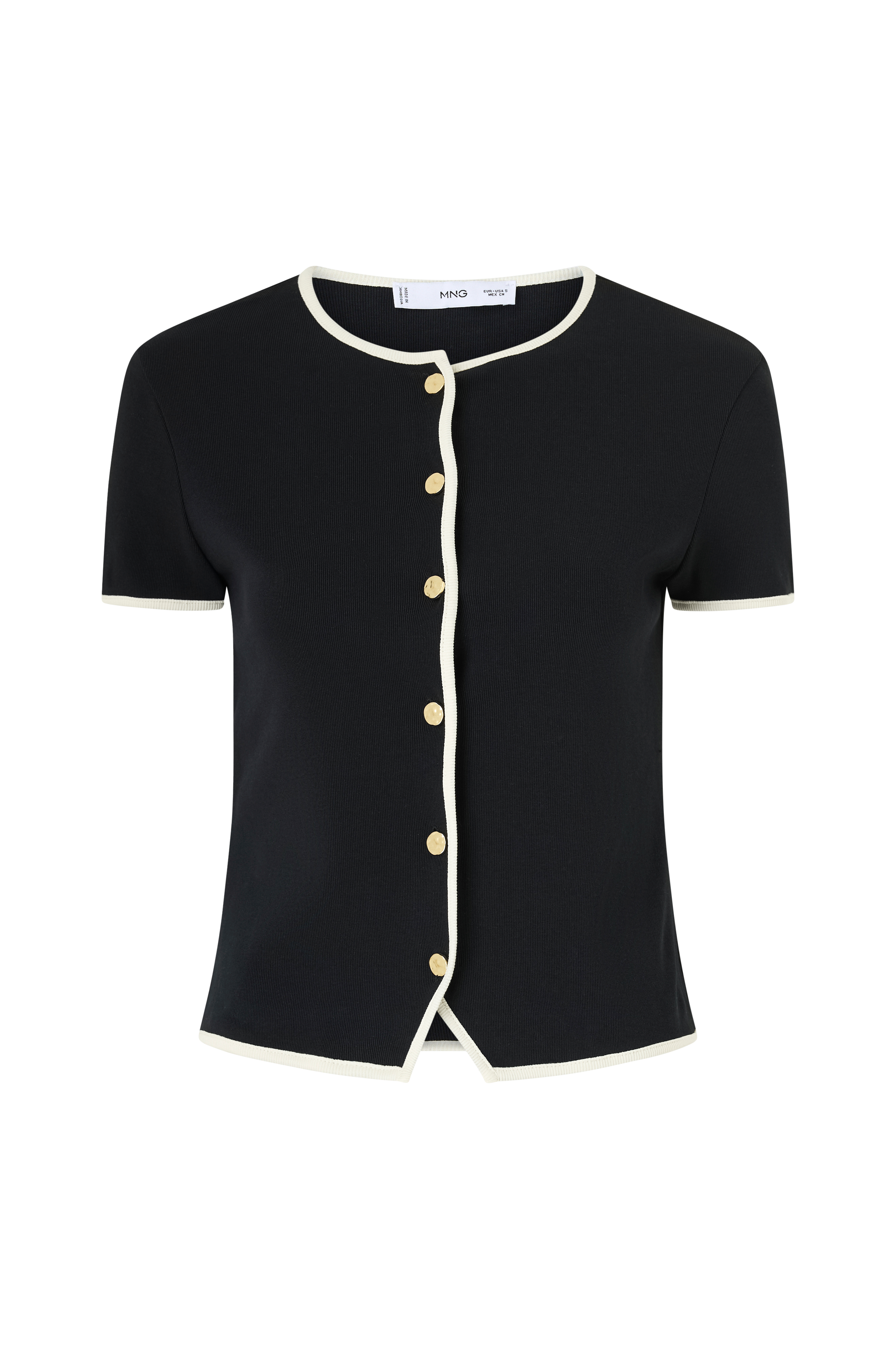• Kortermet topp med smal passform• Rund hals• Gullfargede knapper foran