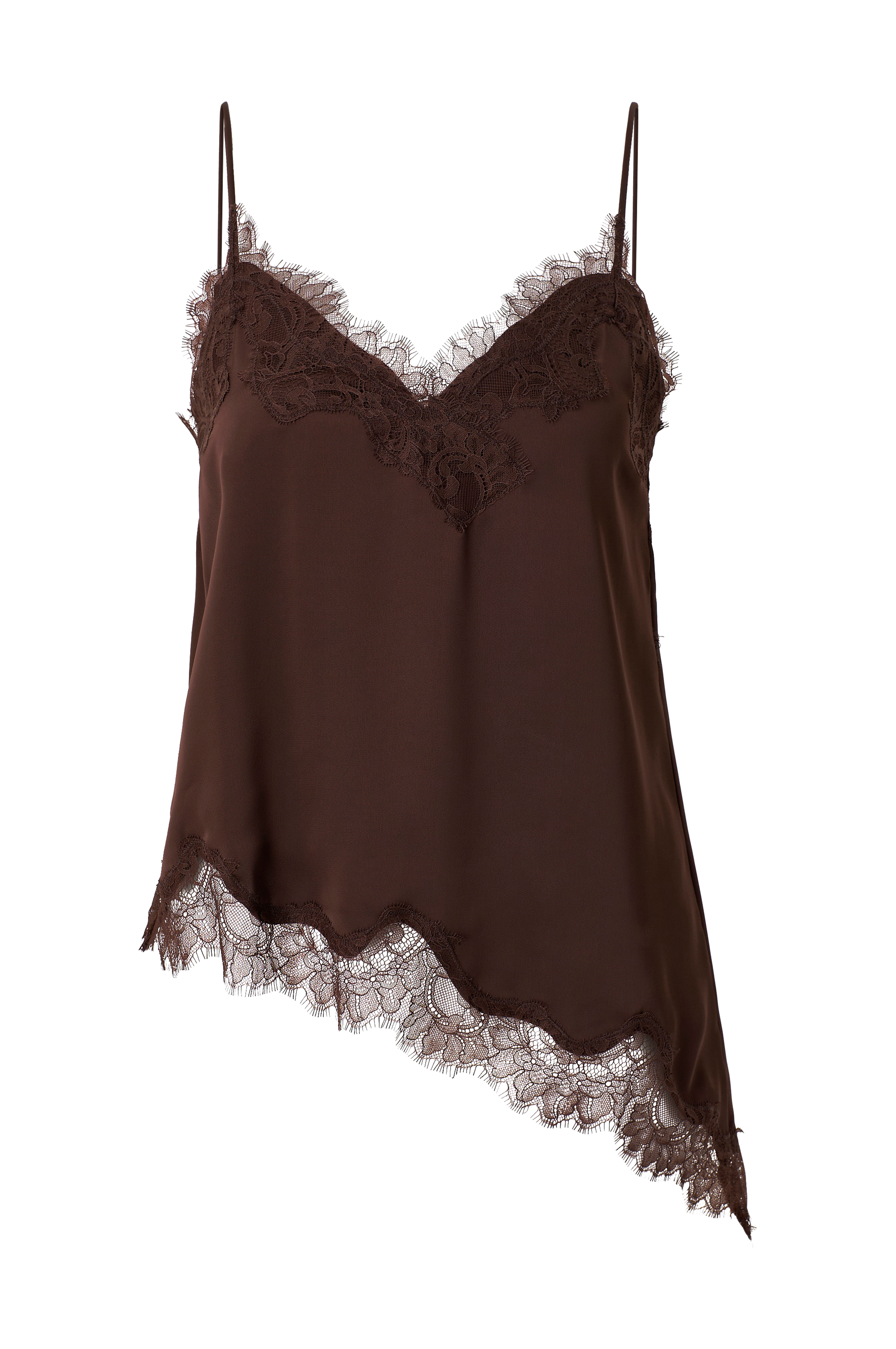 • Ermløs topp i sateng med asymmetrisk hem• Tynne skulderstropper• Dekorative blonder på toppen og i nedre kant
