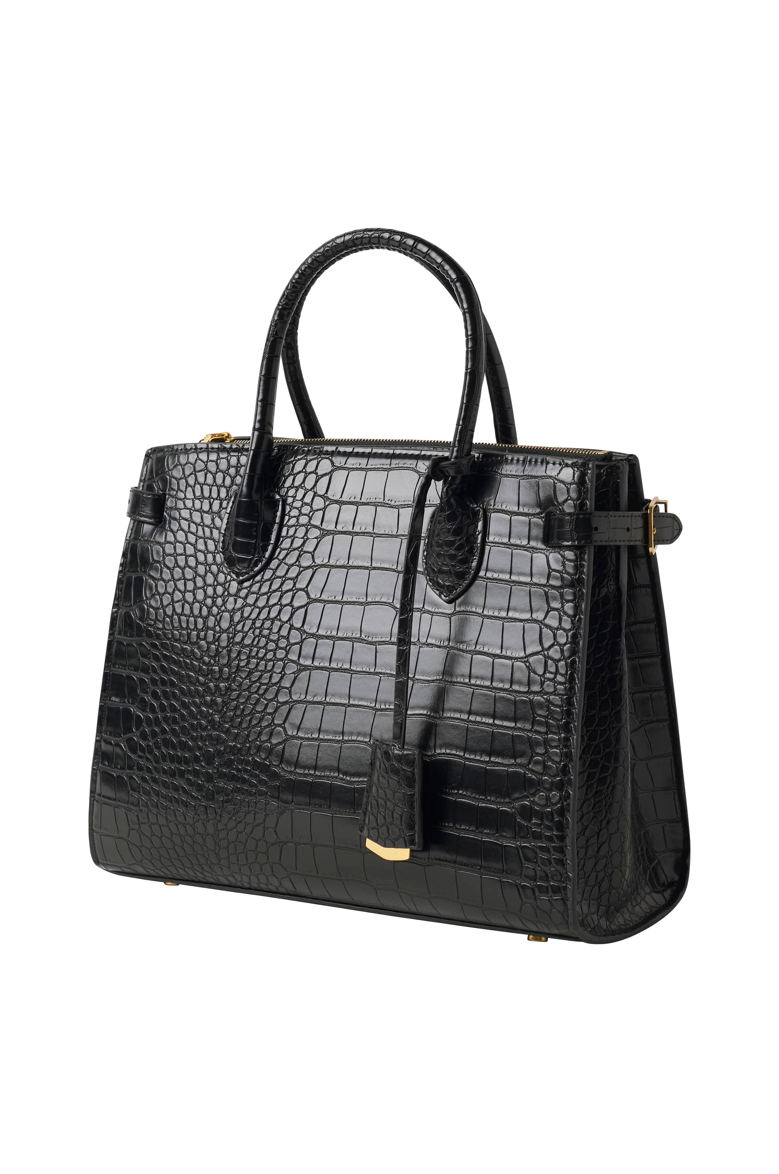 • Vesken i skinnimitasjon med et krokodillemønster• To hovedlommer• En beholderen med glidelås• Sidelomme med glidelås på innsiden• To bærehåndtak• Avtagbar skulderstropp• Mål: B 32 x H 25 x D 15 cm