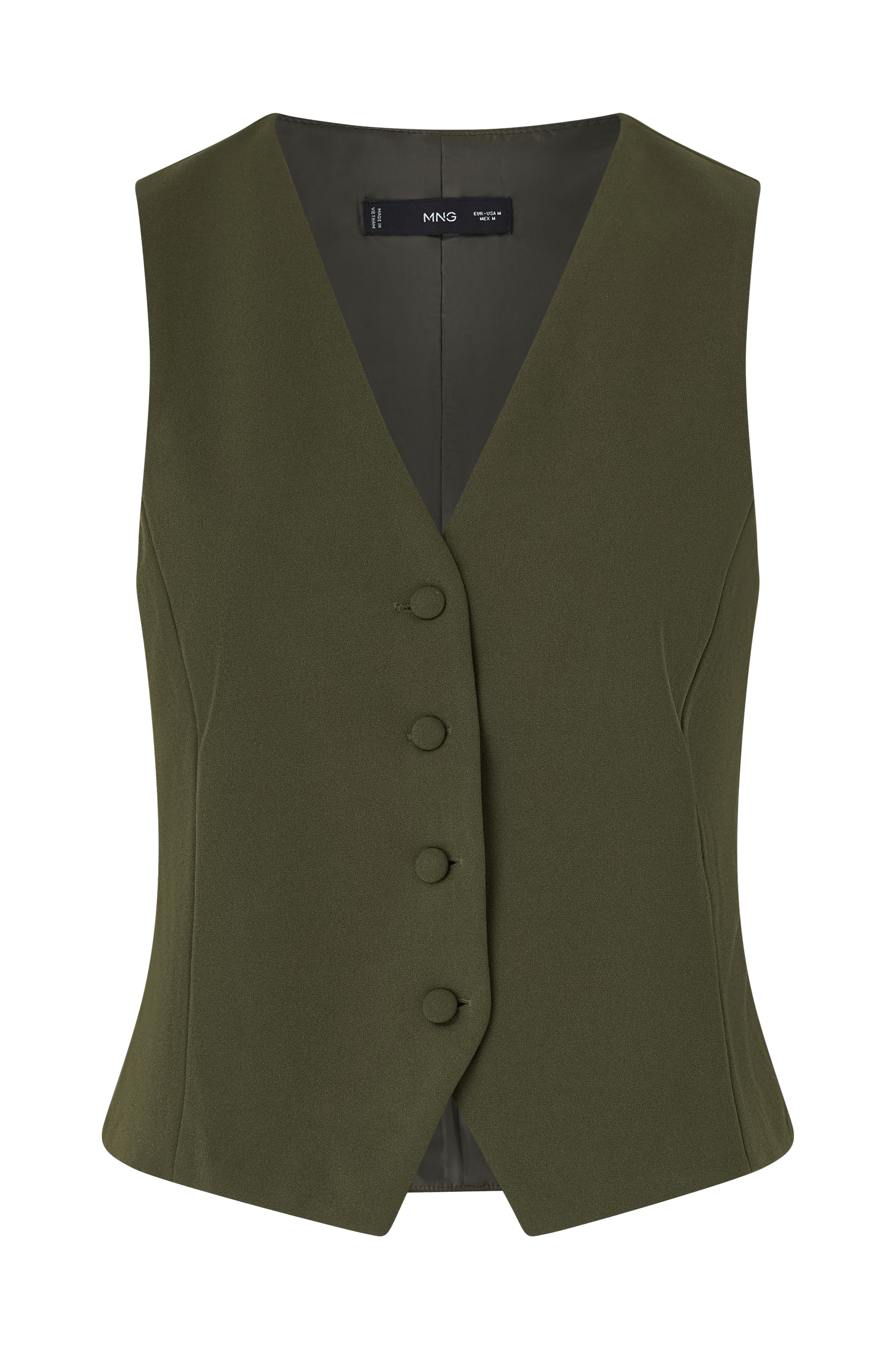 • Knappstolpe med kledde, dekorative knapper foran og trekantet snitt