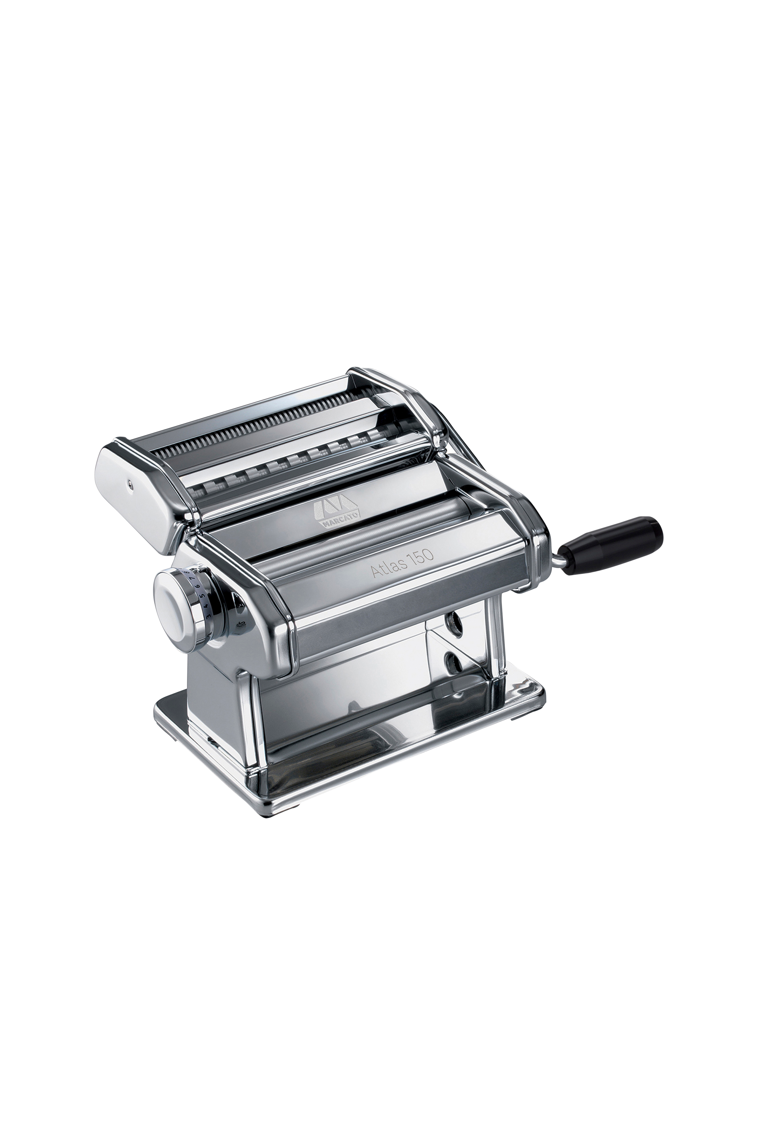 Marcato classic Pastamaskin med justerbar tykkelse på lasagneplatene, fra 0,6 til 4,8 mm. Inkluderer valser for fettuccine (6 mm) og tagliolini (1,5 mm). Maks bredde for lasagneplater er 15 cm, med en bordklemme inkludert.
