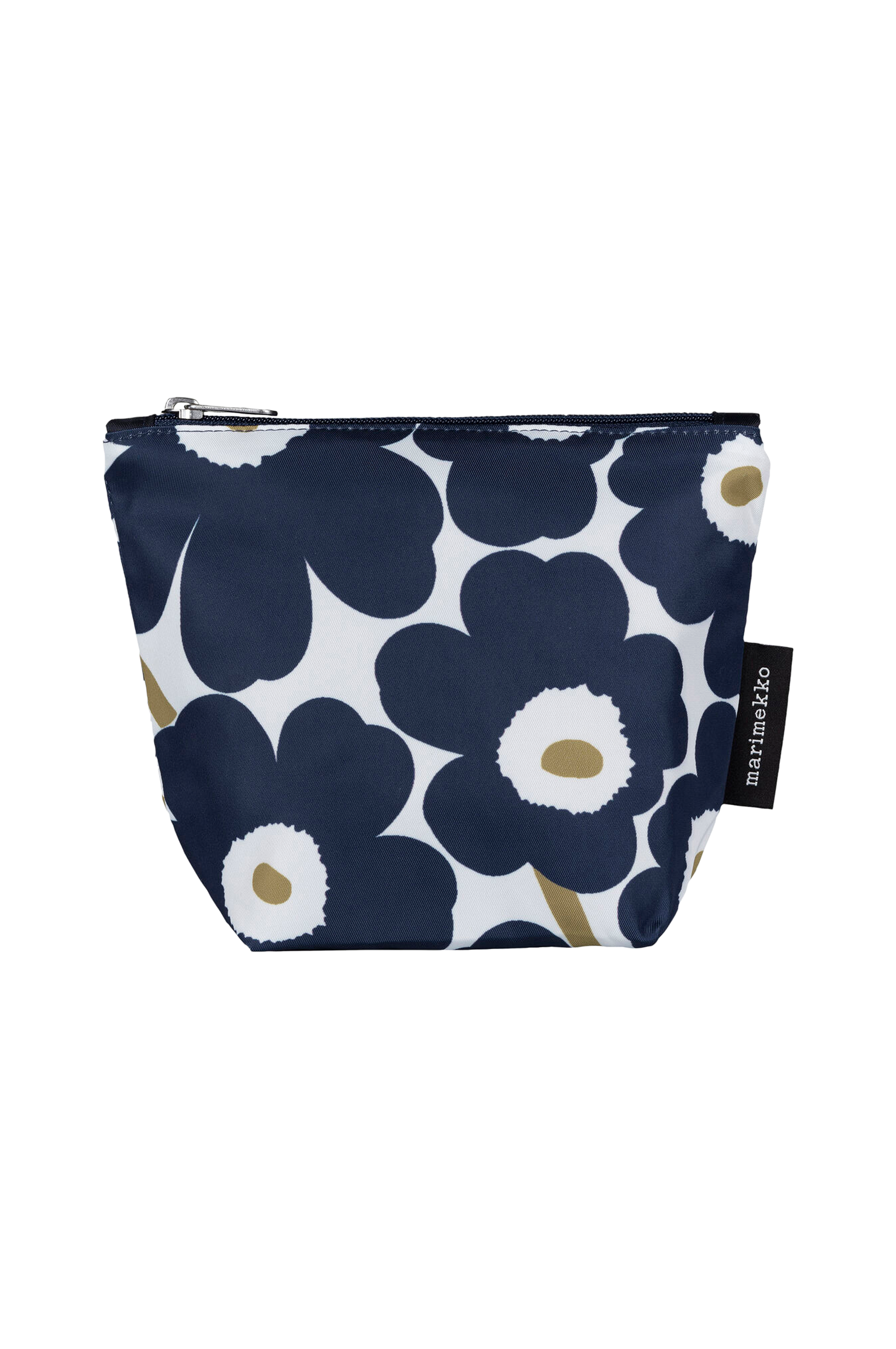 Kait kosmetikkveske er av gjenvunnet polyester med Mini Unikko-mønsteret. Vesken lukkes med glidelås. Unikko, som symboliserer kreativitet, ble skapt i en tid da det knapt var noen blomstermønstre i Marimekkos kolleksjoner. Maija Isola var dog fascinert av temaet blomster, og bestemte seg for å skape en hel rekke nye blomstermønstre.
