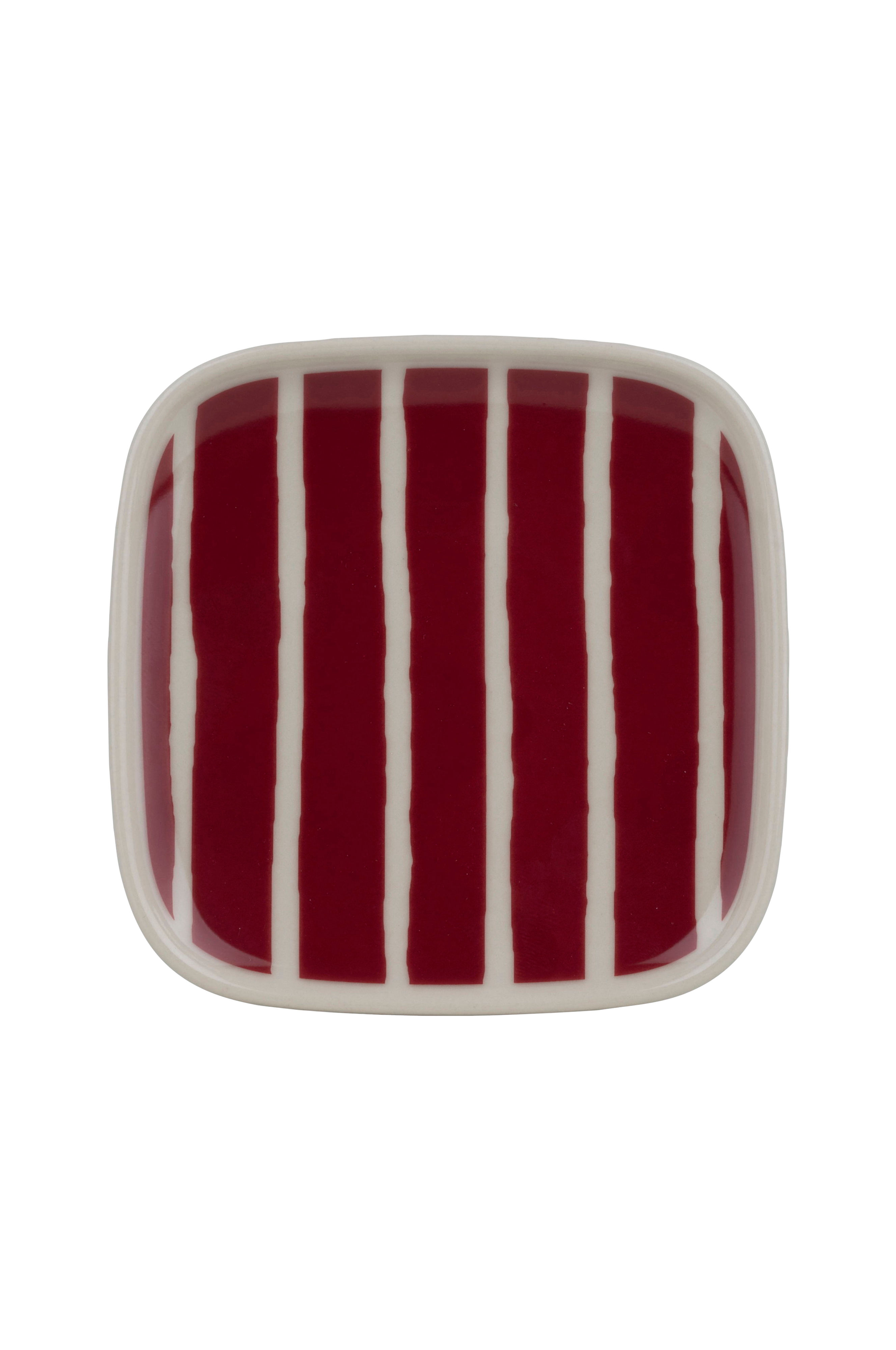 Den lille Oiva-tallerkenen har Piccolo -mønsterdekoren og tåler oppvaskmaskin, stekeovn, mikrobølgeovn og fryser. Tallerkenen er laget av steintøy. Oiva-produktene er designet av Sami Ruotsalainen. Fjern klistremerket fra bunnen av produktet før bruk. Klistremerket inneholder en liten mengde metall. I 1953, samme år som hun begynte hos Marimekko, skapte Vuokko Eskolin-Nurmesniemi Piccolo, et stripete stoffmønster malt med livlige penselstrøk. Tre år senere dukket Jokapoika-skjorten (alle gutter) laget av stoffet opp i butikkene og på gatene - for godt, ser det ut til.