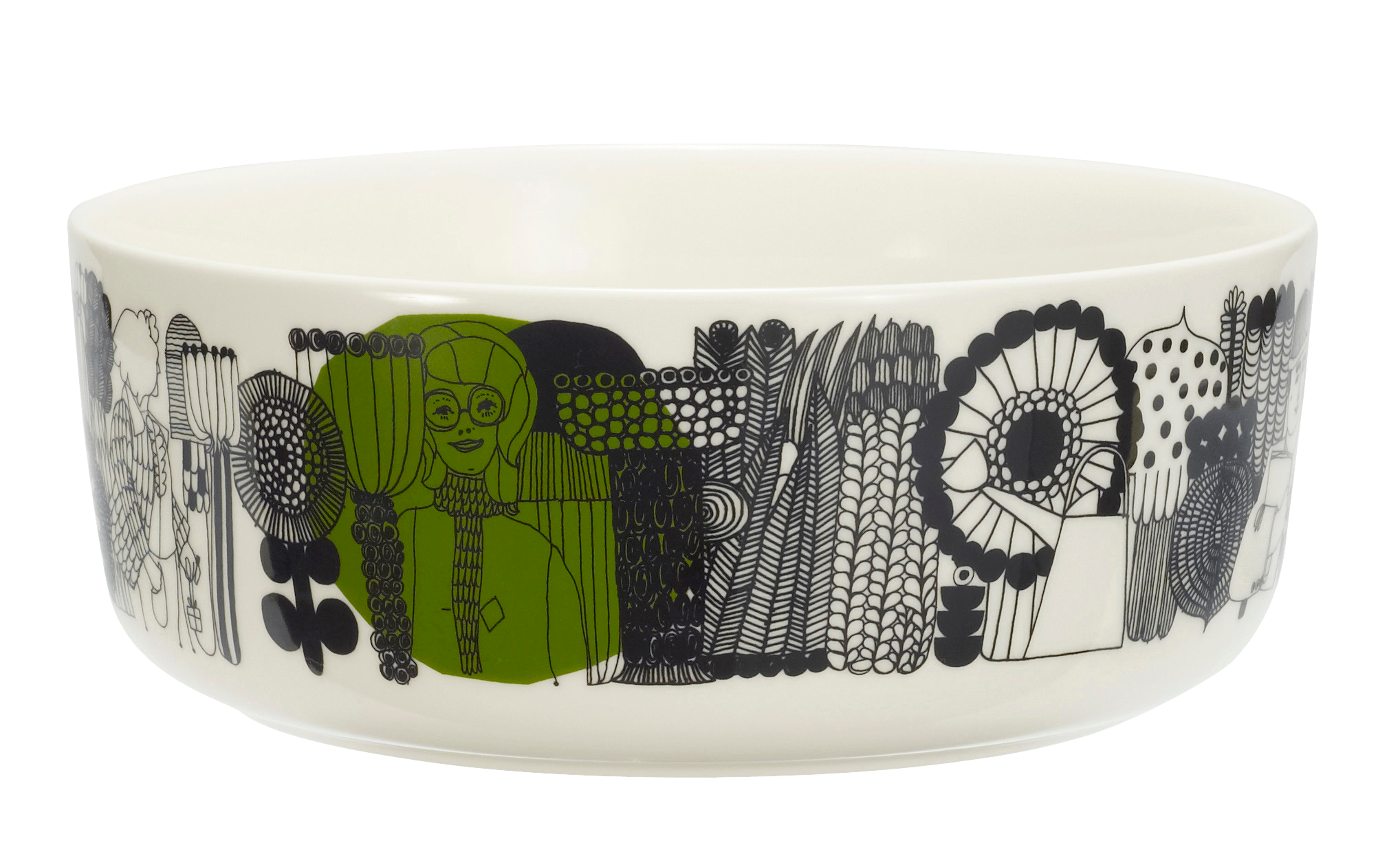 Mønsteret Siirtolapuutarha er en fortelling som løper fra en servisedel til en annen, når vi reiser fra byen til kolonihagen. Skålen er perfekt for salater og desserter. Materiale: stengods. Tåler maskinvask, mikrobølgeovn og fryser.