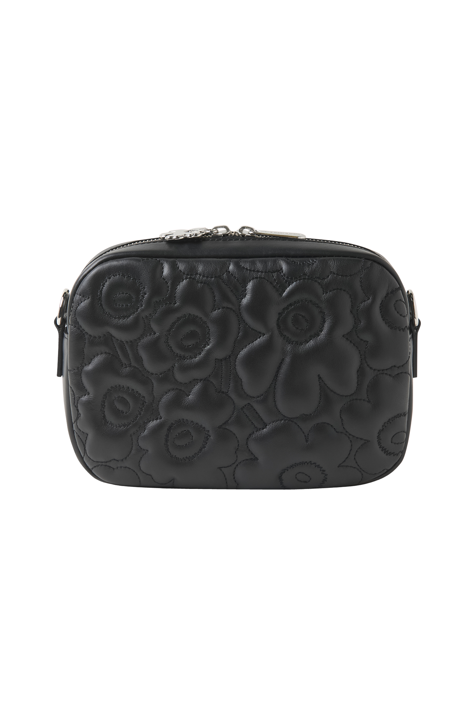 Soft Gratha skuldervesken er laget av polstret skinn, og den har det vatterte Unikko mønsteret. soft nappaskinnet utvikler patina over tid. Vesken har en justerbar og avtakbar skulderrem i jacquardstrikket Unikko mønster, som er laget av resirkulert polyamid. Vesken lukkes med glidelås med en Unikko avtrekker og en glidelåslomme på innsiden. Innsiden av vesken er foret med økologisk bomullsstoff.