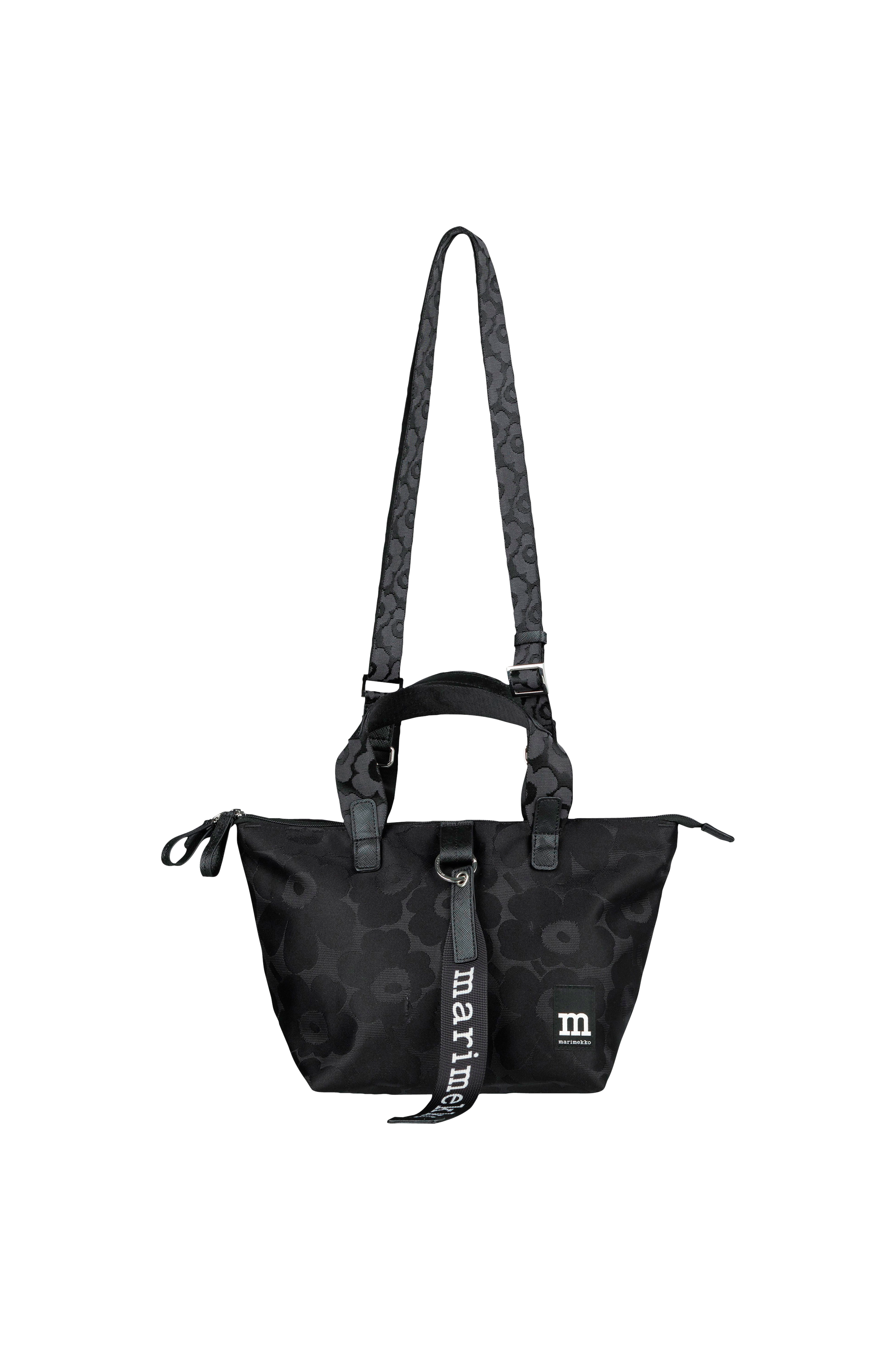 23 x 22 x 14Skuldervesken Tote S har det jacquardstrikkede Unikko -mønsteret. Vesken lukkes med glidelås, har et håndtak og en justerbar skulderrem. Innsiden er foret, og vesken har en innstikkslomme. På forsiden er Marimekko-logoen og Marimekko-nøkkelstroppen festet med en D-ring.