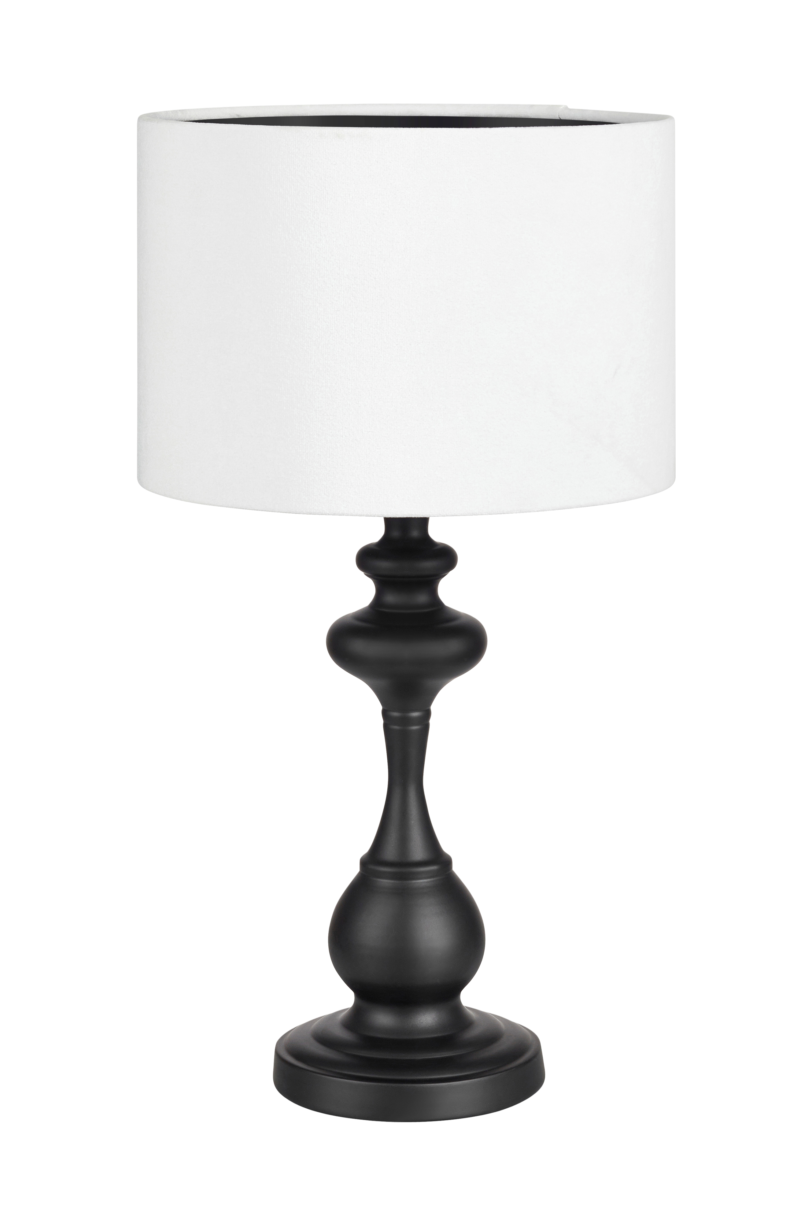 Connor bordlampe fra Markslöjd. Fot i metall med skjerm i fløyel. Høyde 44,5 cm, 24 cm i diameter. 2 m svart tekstilkledd ledning med strømbryter. Stor sokkel (E27). Maks 60W pære eller tilsvarende styrke i halogen, sparepære eller LED. Lyspære ikke inkludert.