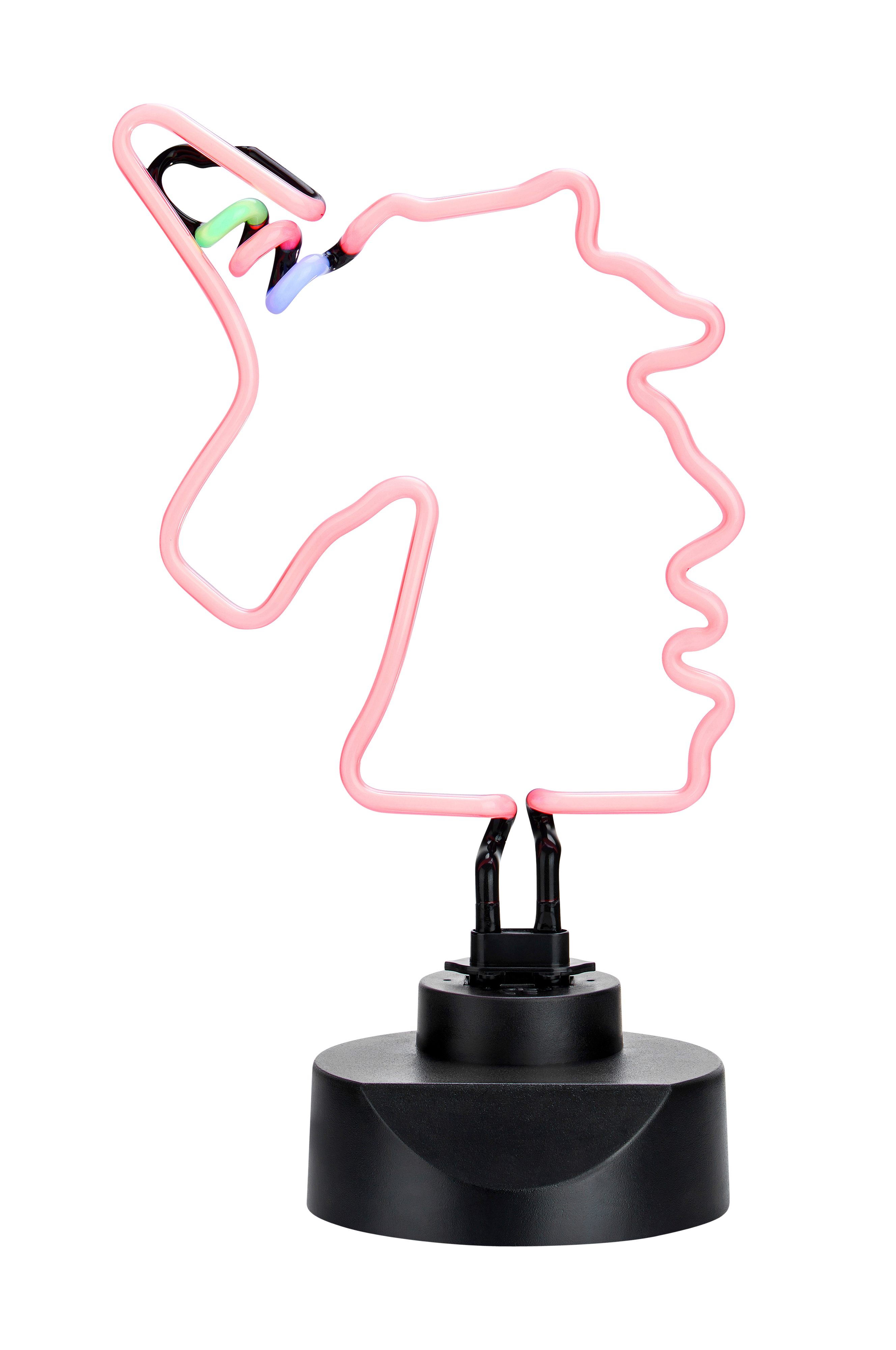 Bordlampe Texas Neon formet som en Enhjørning. Bredde 14 cm, høyde 37 cm. Med transformator. Maks 6 W. Ledningslengde 3 meter.