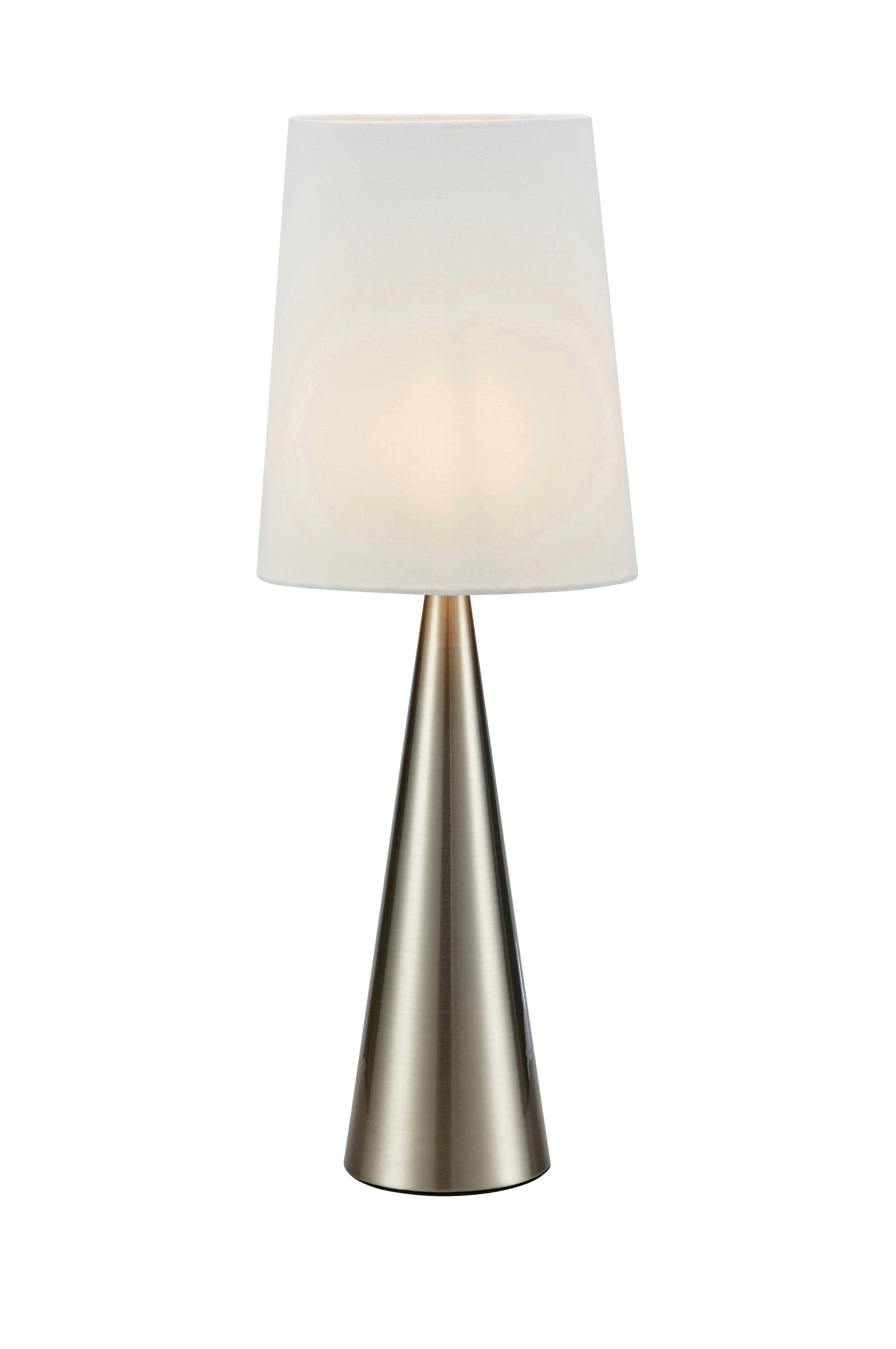 Conus bordlampe fra Markslöjd. Kjegleformet base i metall og skjerm i tekstil. 2 m PVC-ledning med bryter på ledningen og støpsel. 1xE14, maks 40W. Lyspære er ikke inkludert.