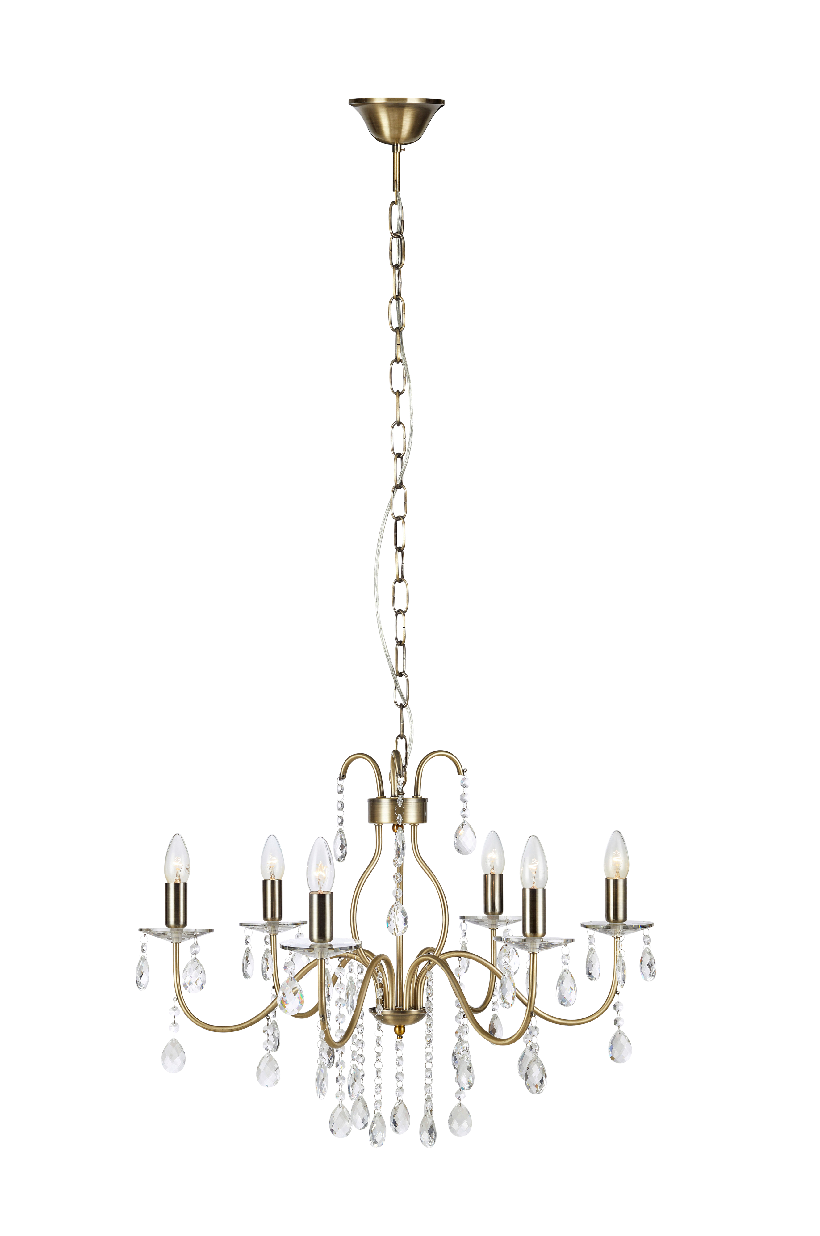 Mary lysekrone fra Markslöjd. Lysekrone i svart metall med vakre skinnende prismer. 150 cm transparent ledning. Henges enkelt opp i takkrok. Mål: Bredde 69,5 cm, dybde 69,5 cm og høyde 39 cm. Maks. 6x40W E14-sokkel. Lyskilde følger ikke med. Kan dimmes.