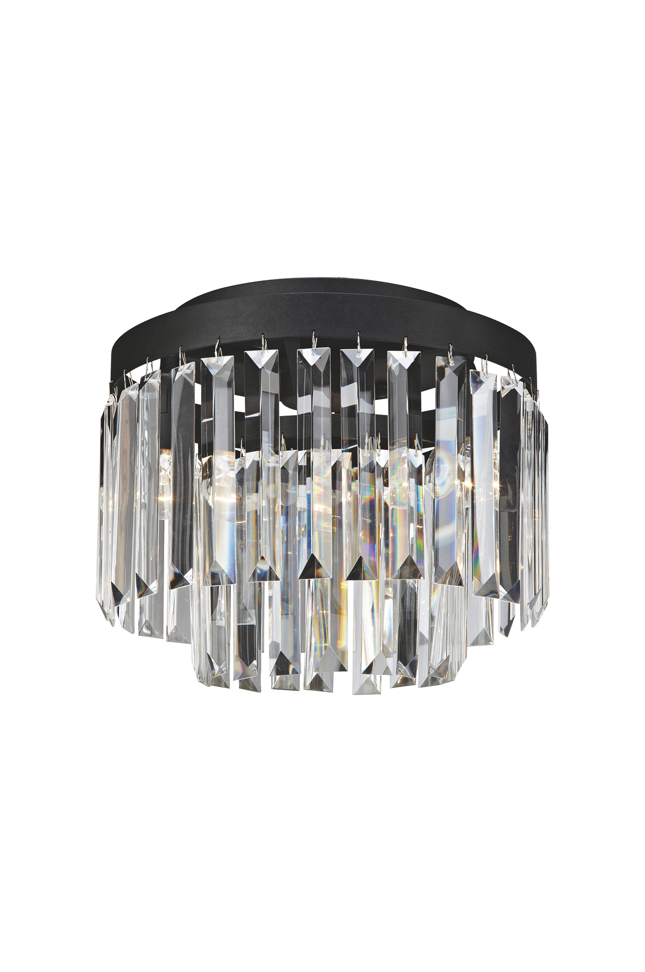 Ventimiglia krystallplafond fra Markslöjd. Svart metallbase med maskinskårne prismer. Tre stk pæreholder E14. Lengde 30 bredde 30 høyde 26 cm. Lyspære inngår ikke.