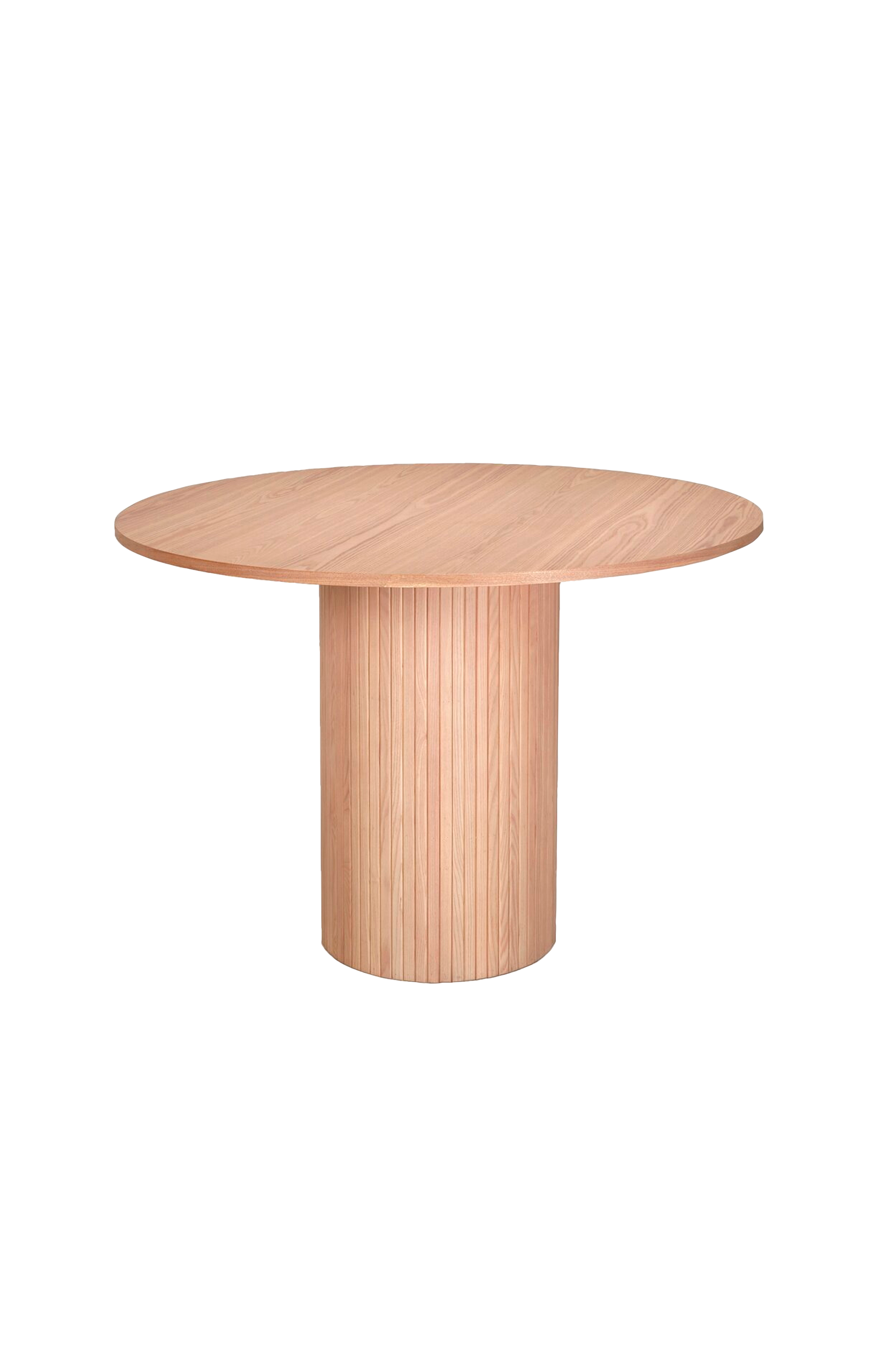 Spisebord med søylefot, lekre trepaneler i askefinér.