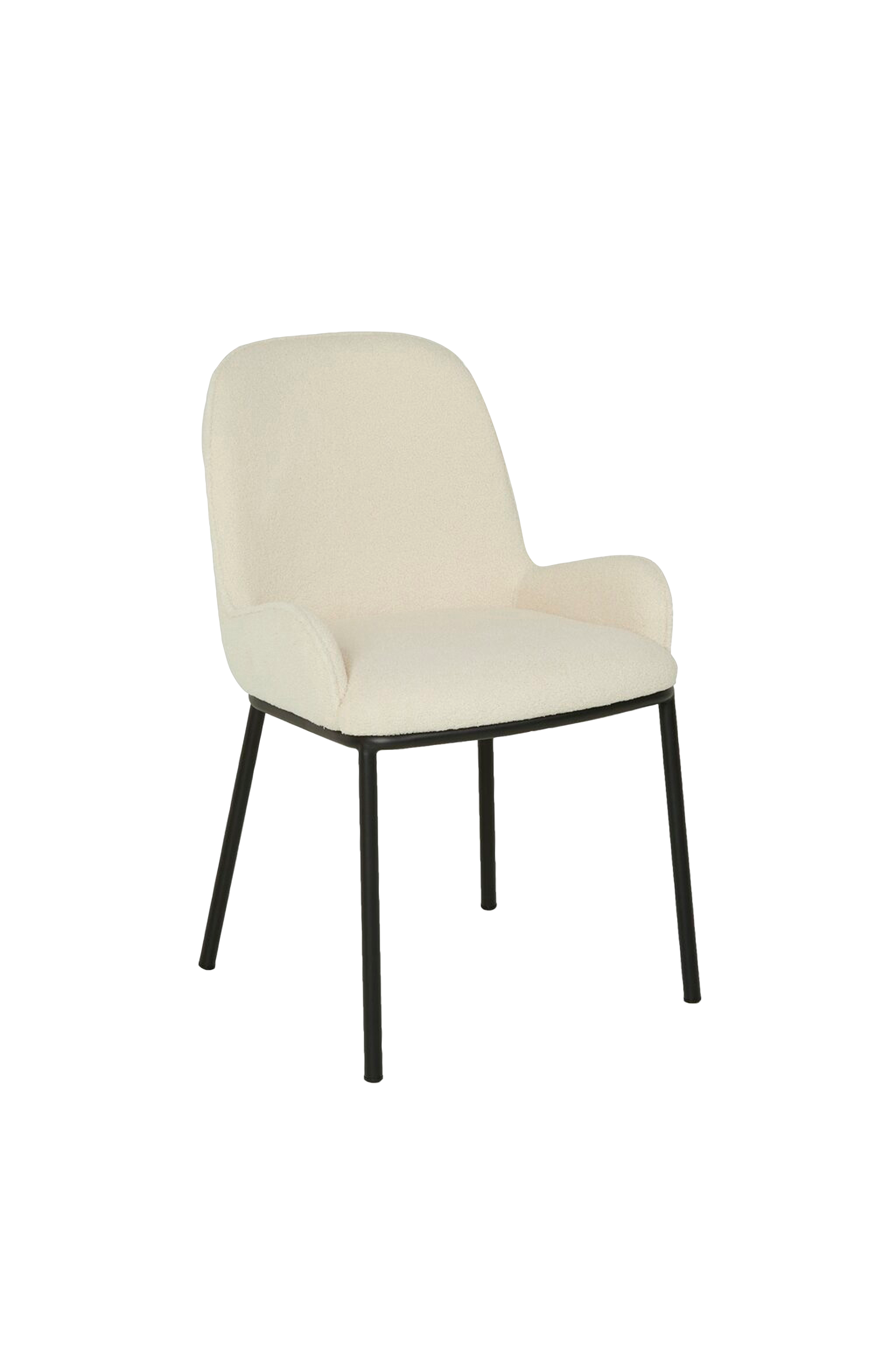 Whitney stol er ikke bare pen å se på, den er også veldig god å sitte i. Den svarte rammen rundt gir stolen det lille ekstra. Den er kledd i et herlig stoff og har svarte sandblåste metallben.