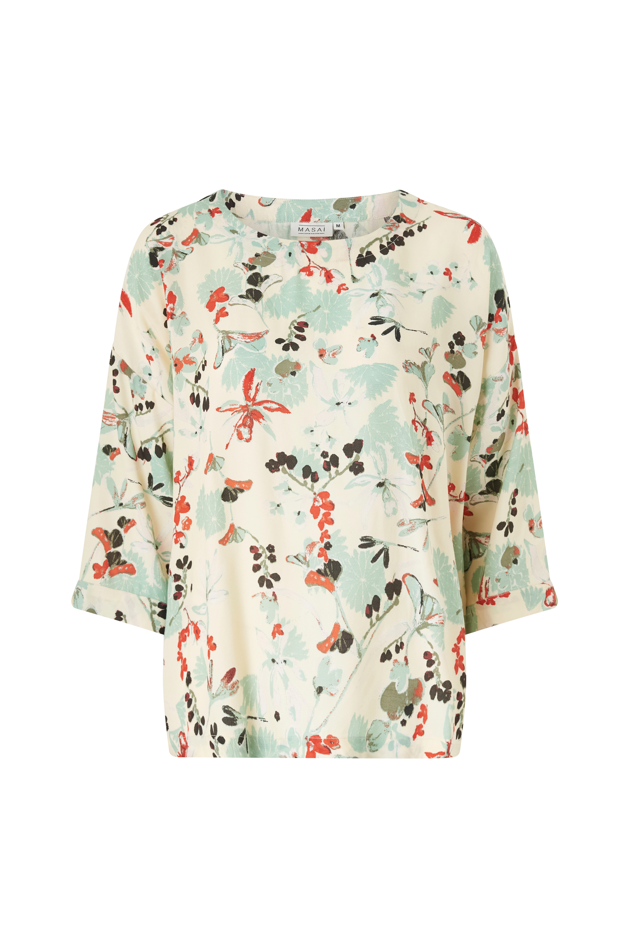 • Rett modell• Rund hals• Utringet skulder• Rett erme 3/4 lang med lite skjær ved armenden