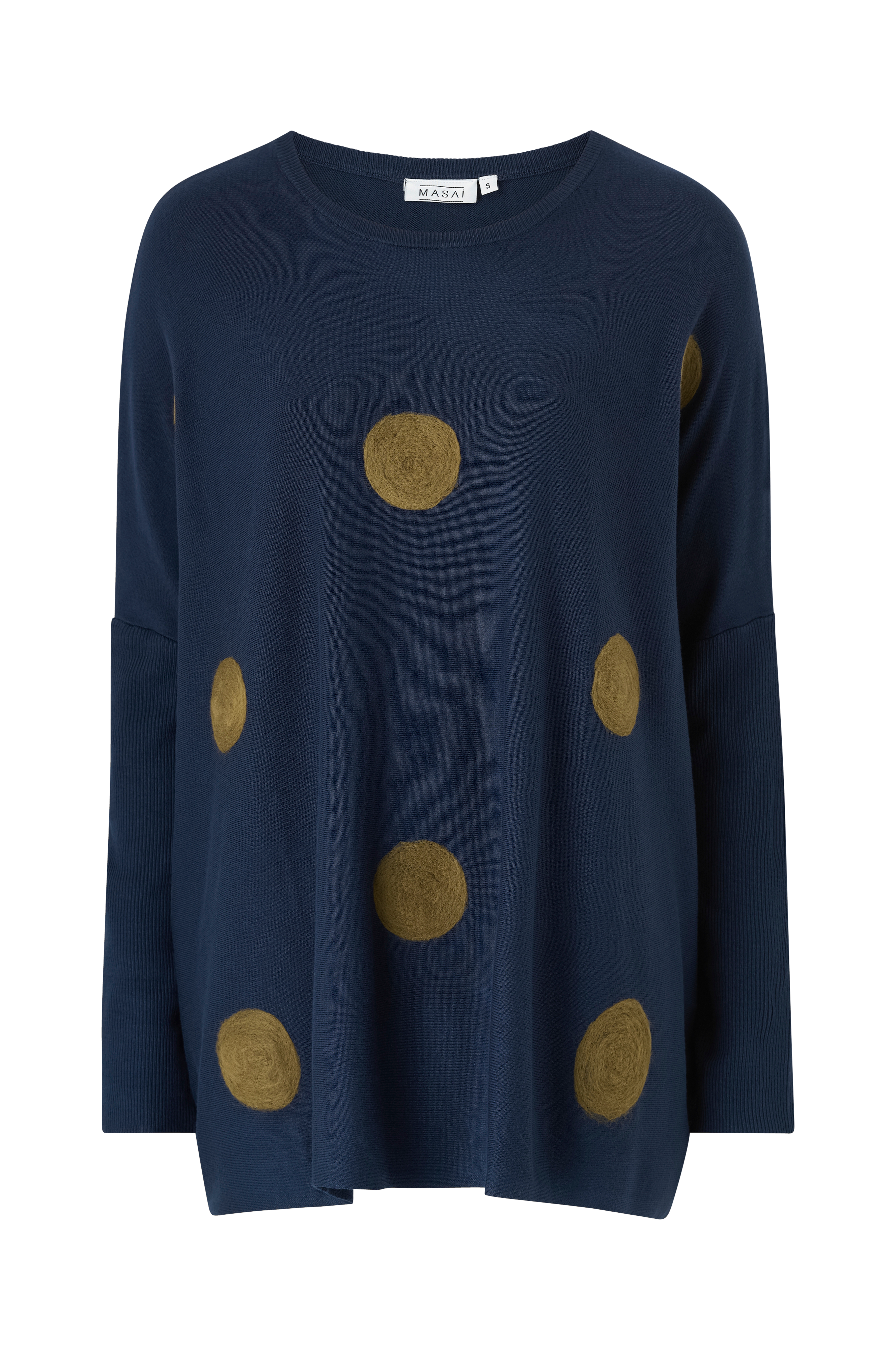 • Finstrikket oversizemodell med påsydd applique foran• Utringet skulder med ribbestrikket erme• Hals med ribbet kant