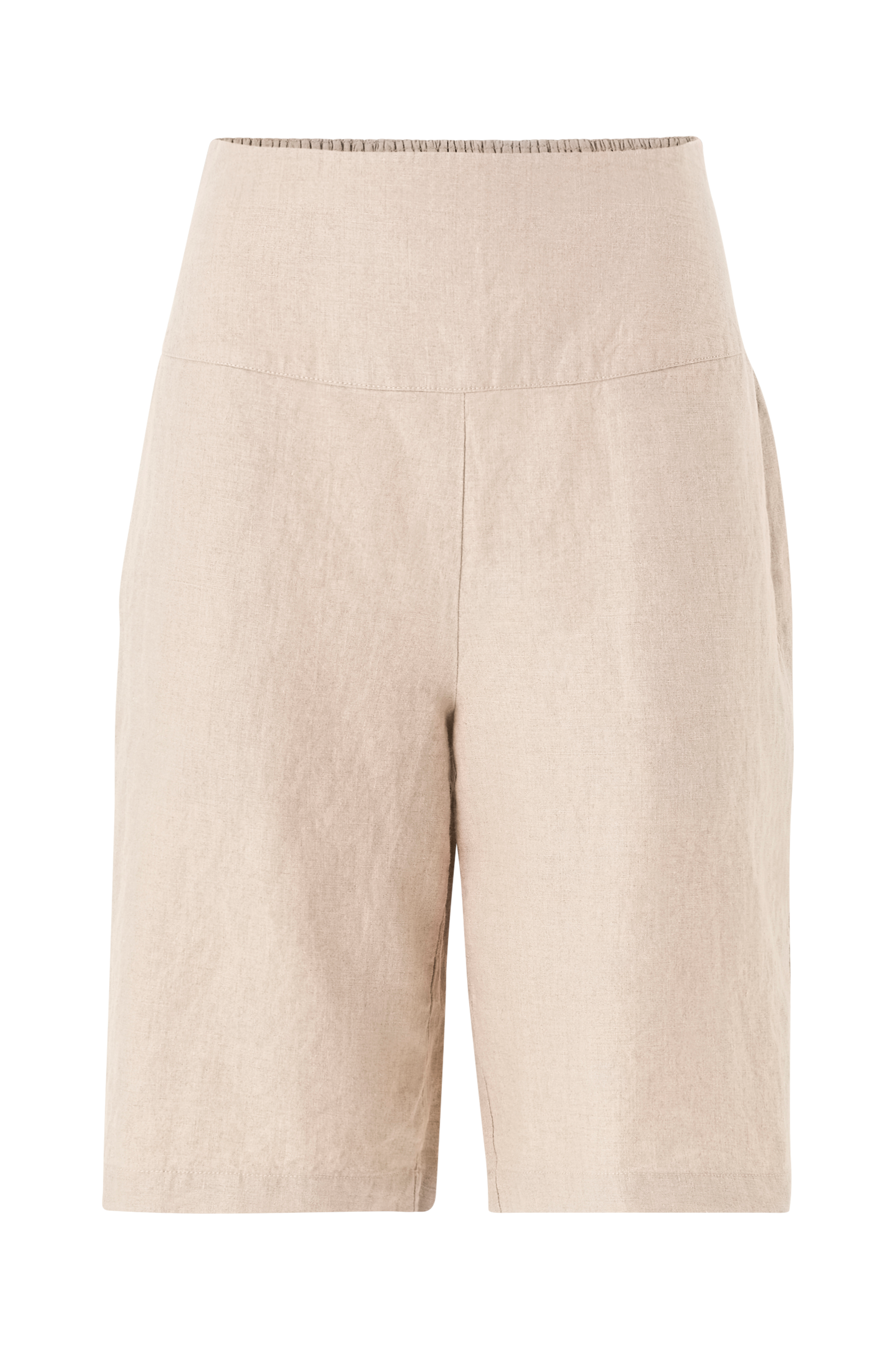 Linshorts Pinja fra Masai i løs, litt lang modell i luftig linkvalitet. Bred, markert midje med vaffelstrikk bak. Lomme i sidene. Indre benlengde ca. 25 cm i str S.
