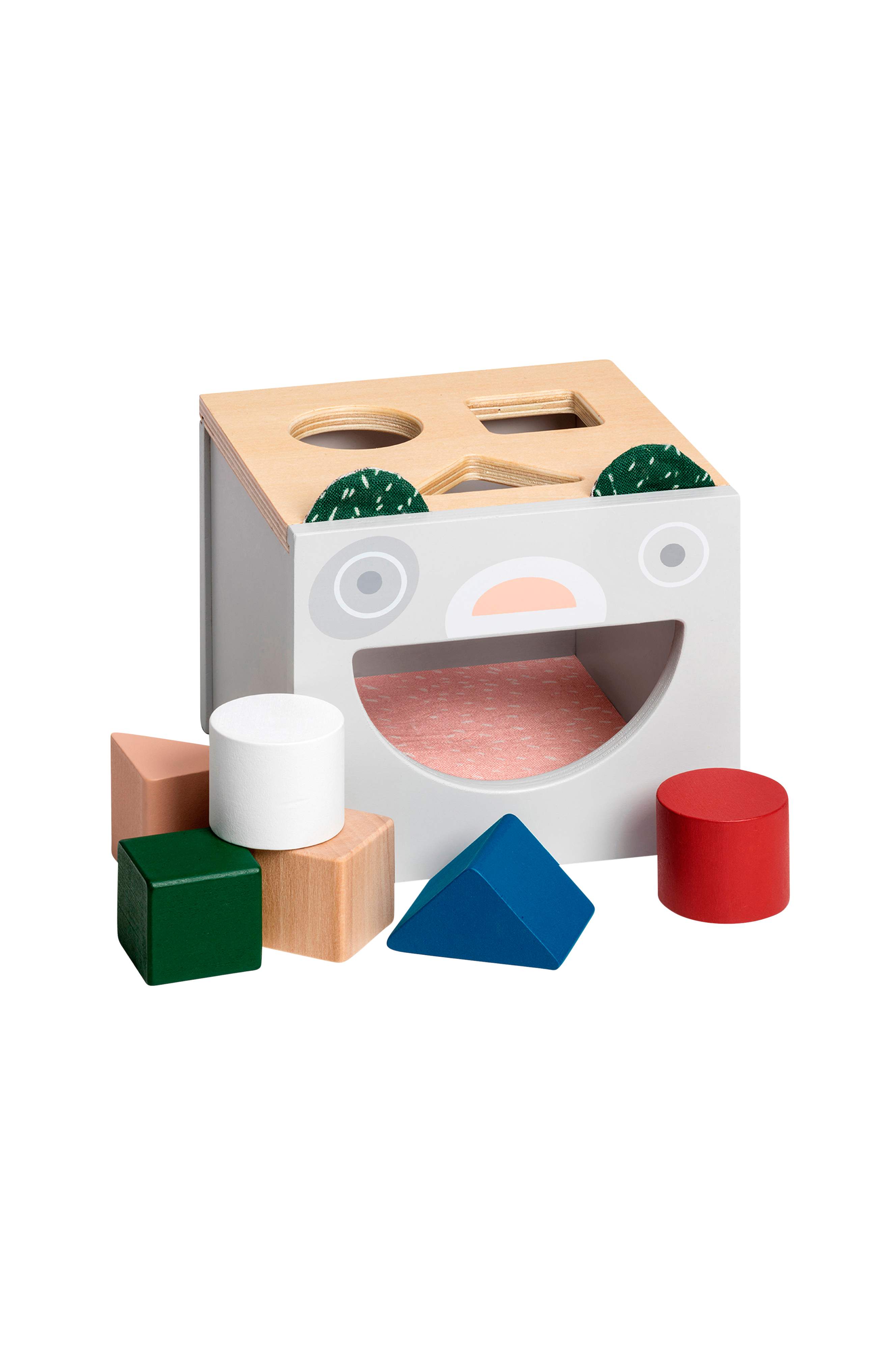 Putteboksen er en populær, klassisk leke fra Micki. Her i form av en søt bjørn i tre med myke detaljer i grønn lin! Puttekassen er morsom å leke med, trener motorikken, og lar barnet benytte flere av sansene sine i leken. Hvilken kloss passer i hvilket hull? Og hvordan føles bjørnens myke ører når du tar på dem? Når klossene er i boksen, stikker man hånden inn gjennom bjørnens smilende munn for å ta dem ut og starte på nytt.