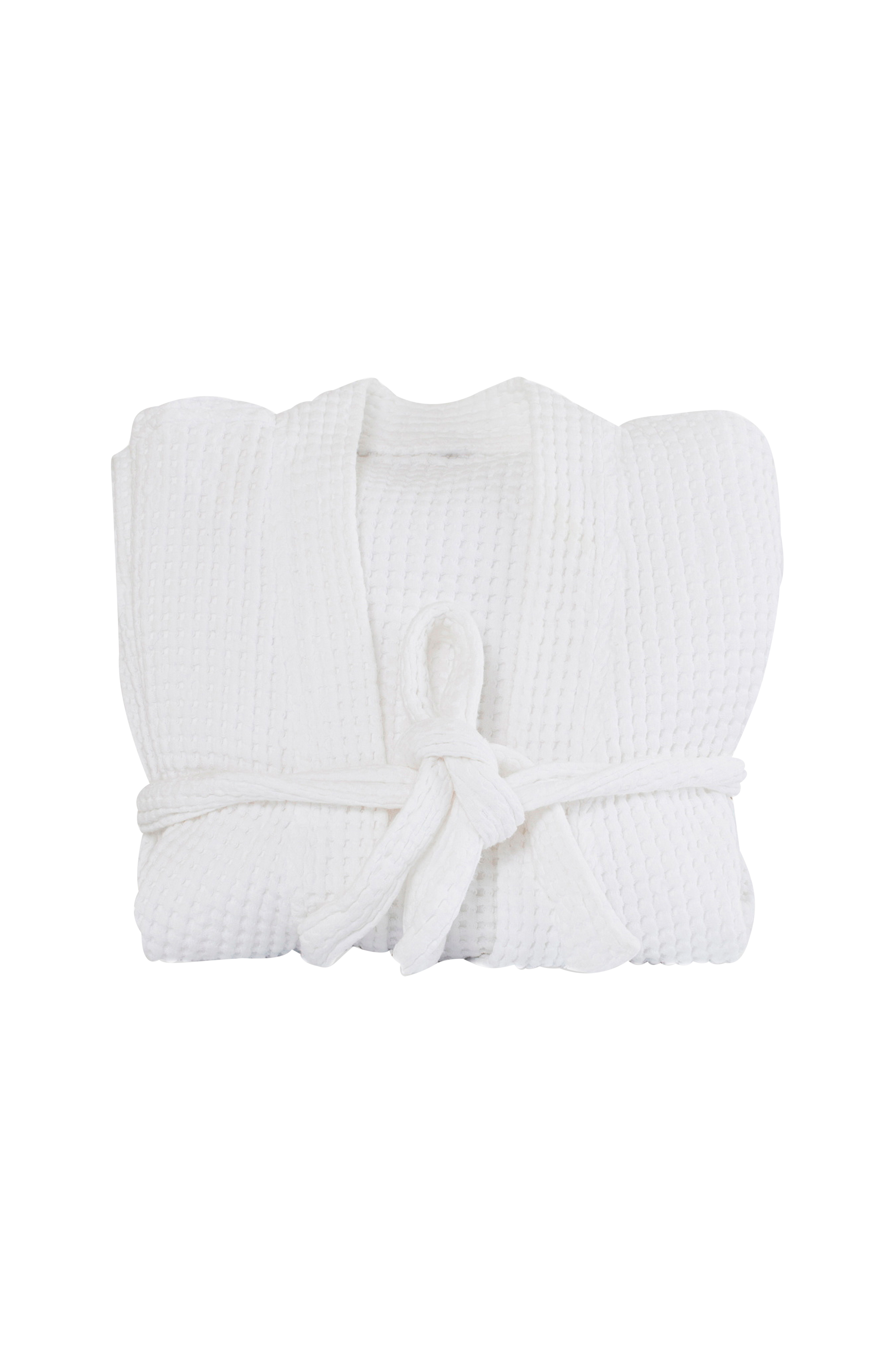 Badekåpe med vaffelstruktur laget av økologisk kjemmet bomull. Sertifisert av gots (global standard for økologiske tekstiler).