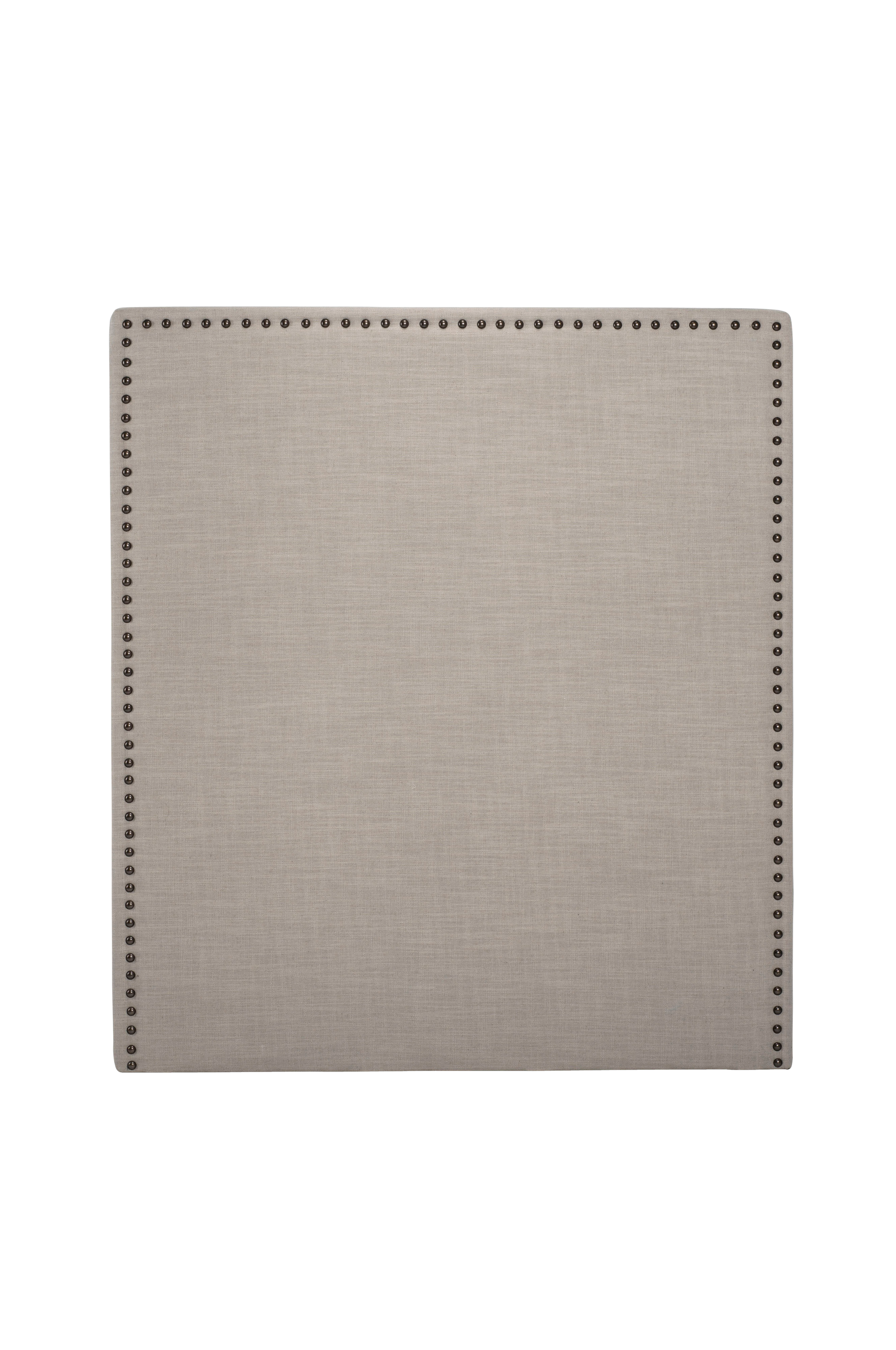 Stoppet sengegavl kledd i et eksklusivt og slitesterkt møbelstoff med linstruktur (70% polyester, 20% lin, 10% bomull) med dekorative nagler som løper langs kantene. Gavlen kan stå fritt eller festes i sengen. Høyde: 135 cm. Leveres med 3 cm høye benknotter. Bredde: 90-210 cm. Tykkelse: 6 cm.