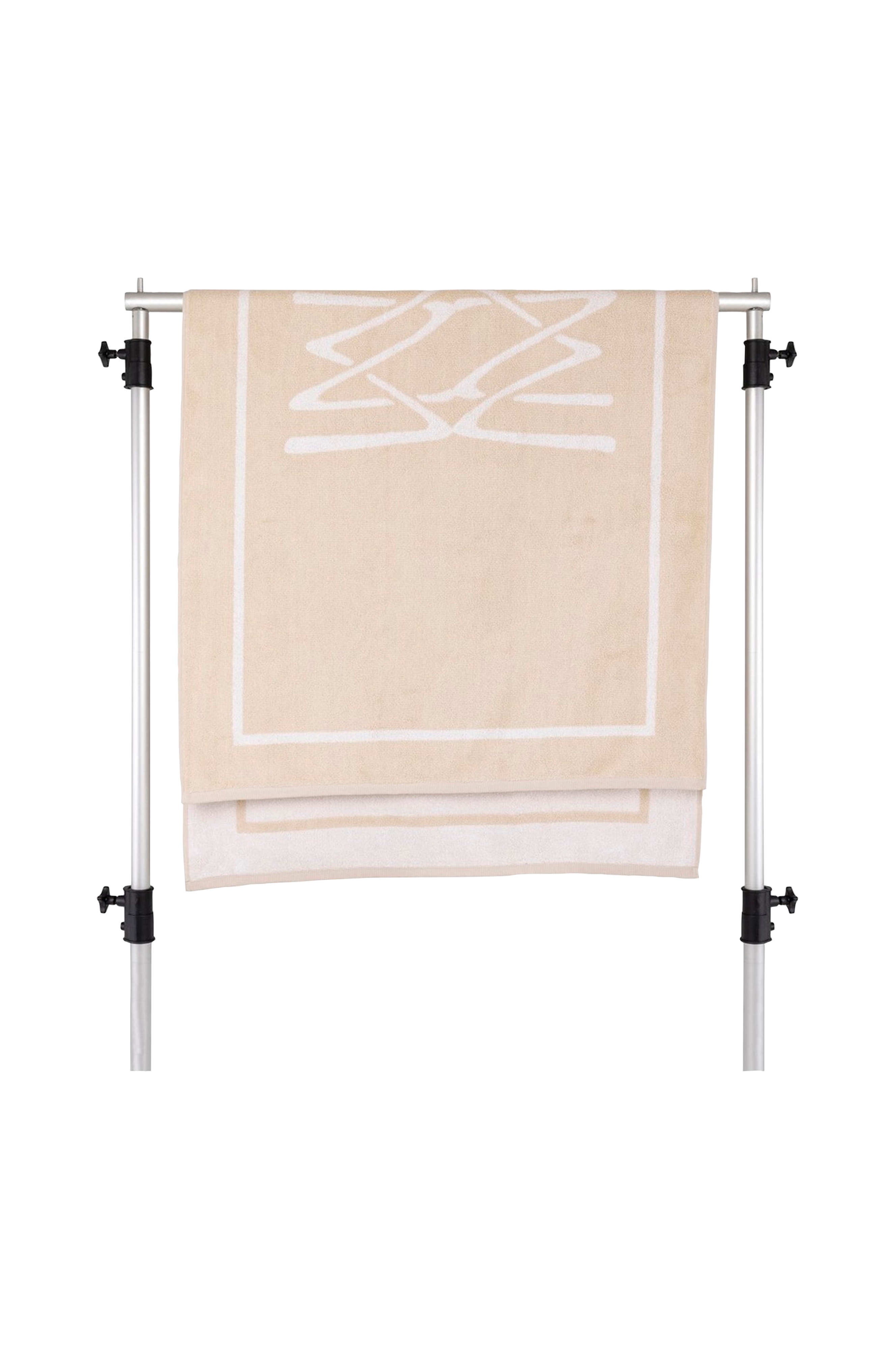 Stilig strandhåndkle laget av økologisk ringspunnet bomull i en førsteklasses vekt på 550 g/m². Mykt og luftig, med utmerket absorberingsevne. Vevd med mille notti-monogrammet i et sentrert mønster, med en dekorativ ramme. Sjenerøs størrelse (86x180 cm). Sertifisert av gots (global standard for økologiske tekstiler). Produsert i Portugal.