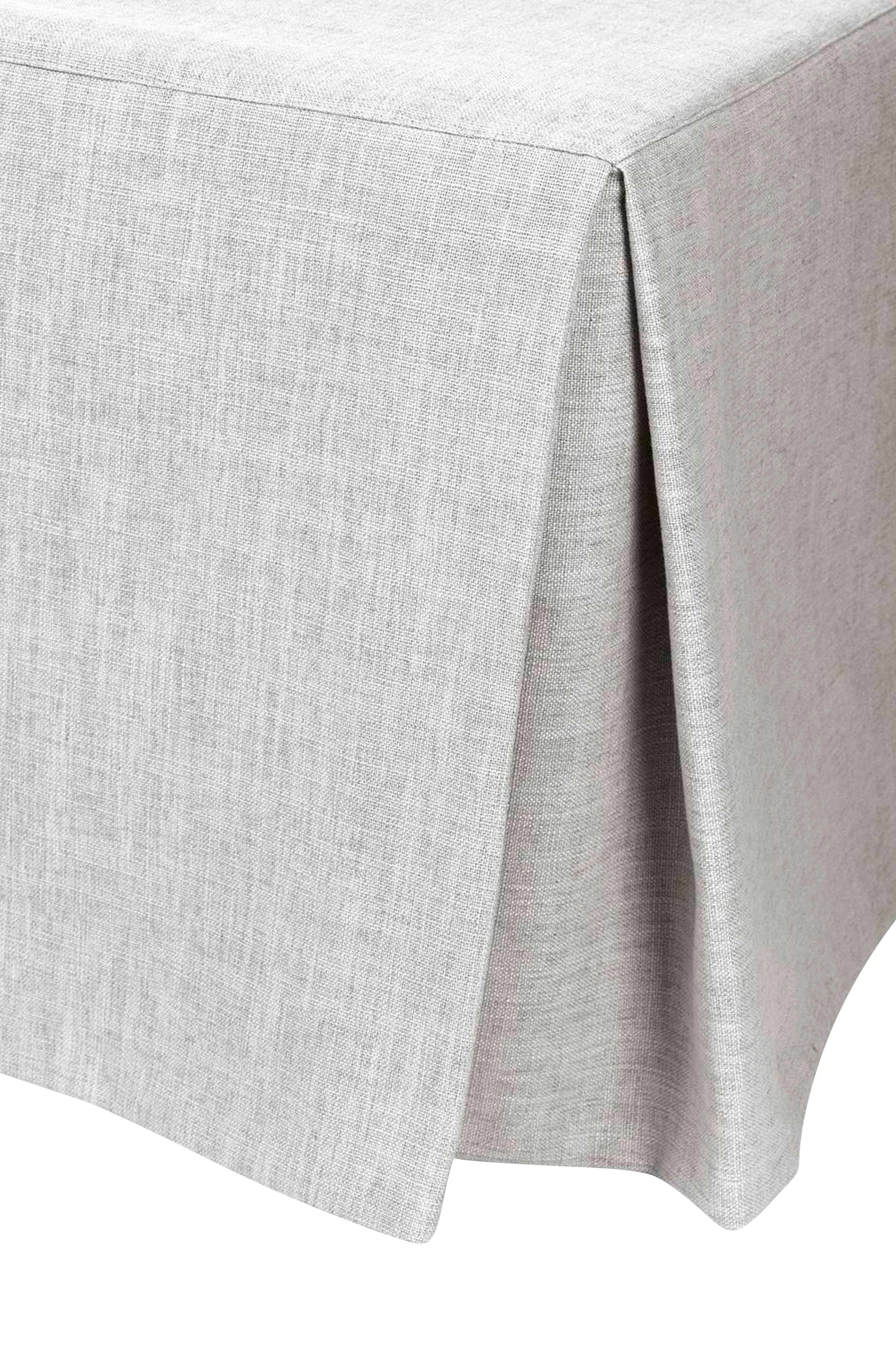 Sengekappe i boksmodell med motlegg i hjørnene. Produsert i et stoff med linstruktur (70% polyester, 20% lin, 10% bomull). Kommer i alle standardbredder. Høyde 54 cm.